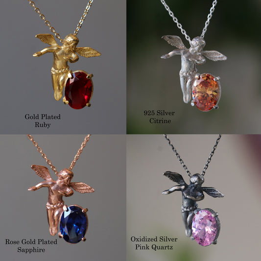 Vintage Melek Sitrin Taşlı 925 Gümüş Kolye