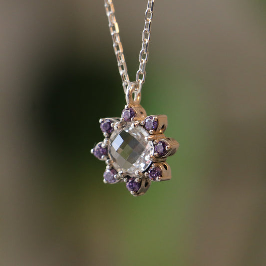 Prenses Garnet ve Mozanit 925 Gümüş Kolye