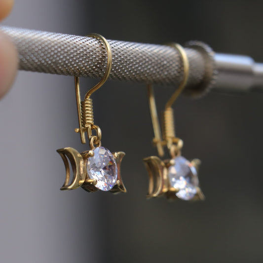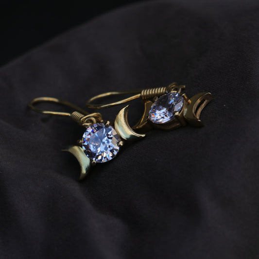 Ay Tanrıçası Mozanit 925 Gümüş Altın Kaplama Küpe