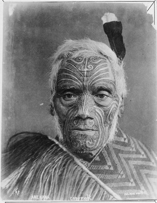 “Moko” is a type of camouflage that New Zealand native Maoris put on their faces before going hunting. This camouflage has become a permanent tattoo over time. The lines on...