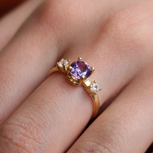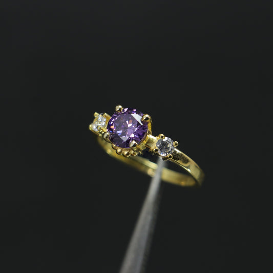 18 Carat Gold Plated 925 Silver Ring with Amethyst Stone