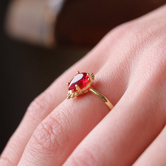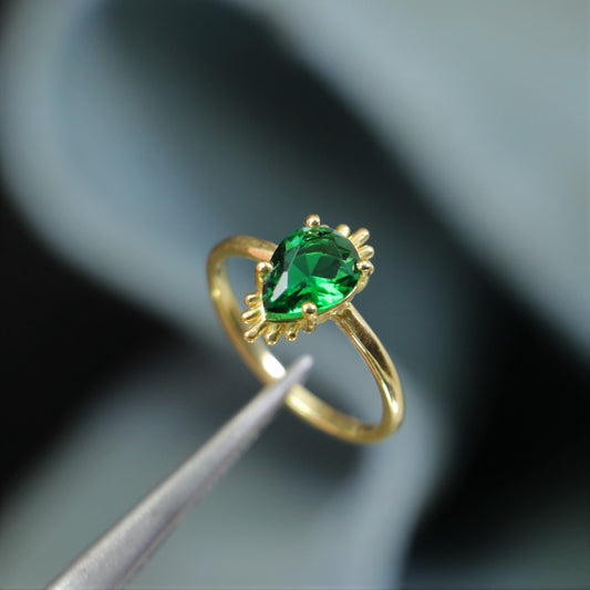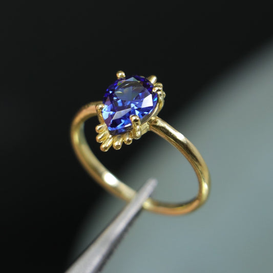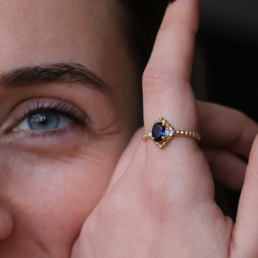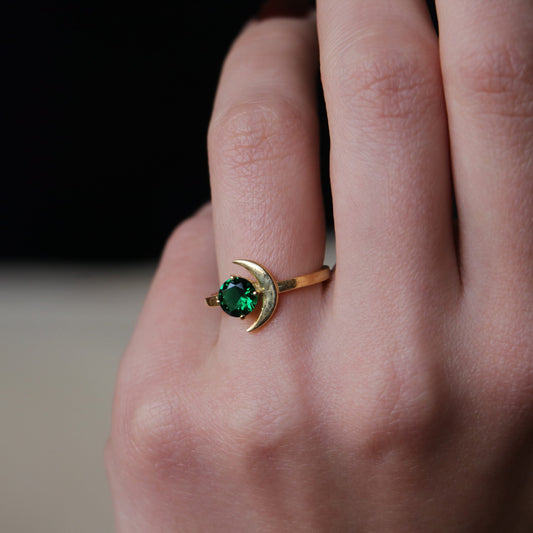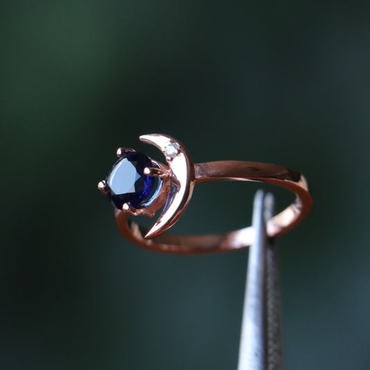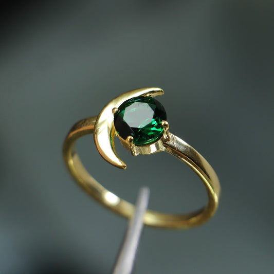 Special Design Labradorite and Moissanite Lotus 14 Carat Gold Ring