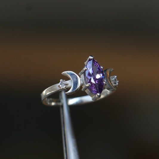 Moon Goddess Marquise Amethyst 925 Silver Ring