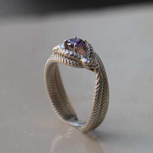 Tanzanite Ouroboros 925 Silver Gold Plated Ring