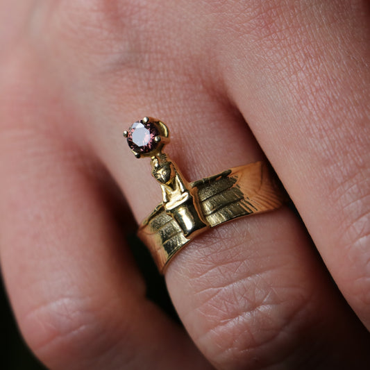 Champagne Moissanite 925 Silver 18 Carat Gold Plated Isis Ring