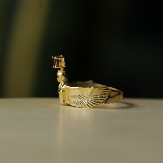 Moon Goddess Garnet Oxidized 925 Silver Ring