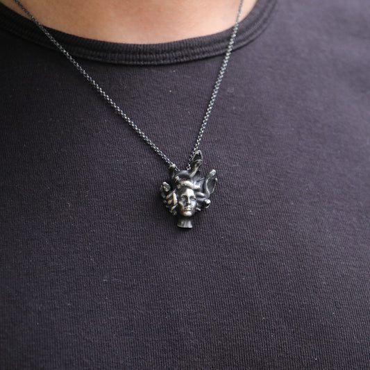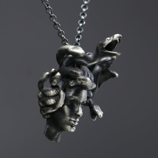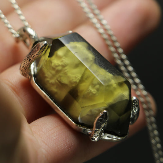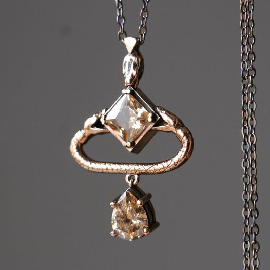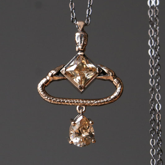 Emerald Lab. Sapphire Snake Handle 925 Silver Necklace