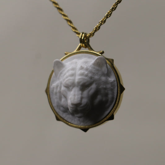 Marble Lion 925 Silver Gold Plated Necklace