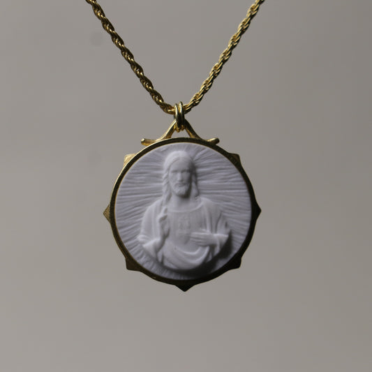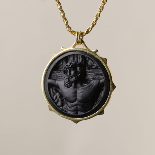 Jesus Christ and the Cross Blue Eye 925 Oxidized Silver Necklace