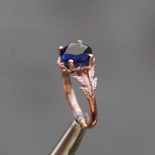 925 Silver Rose Gold Plated Ring with Aquamarine Stone and Leaf Detail