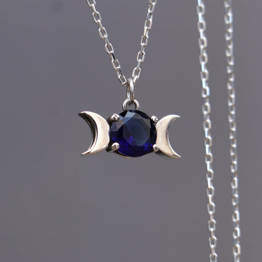 Moon Goddess Lab. Sapphire 925 Silver Necklace