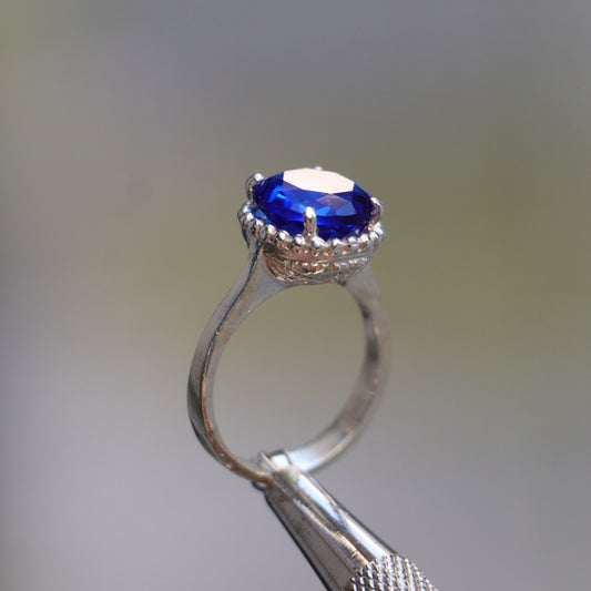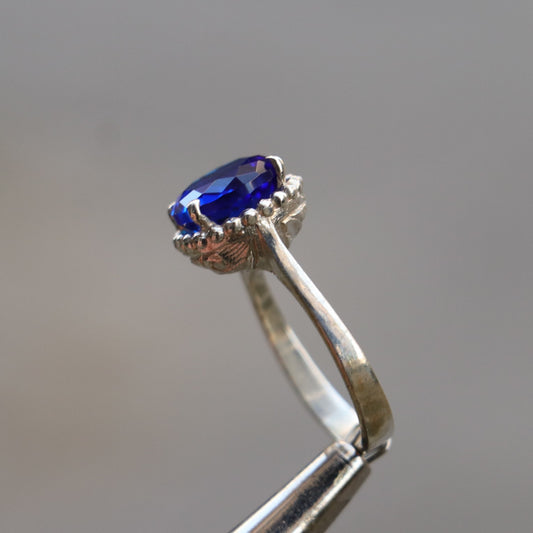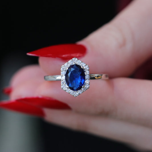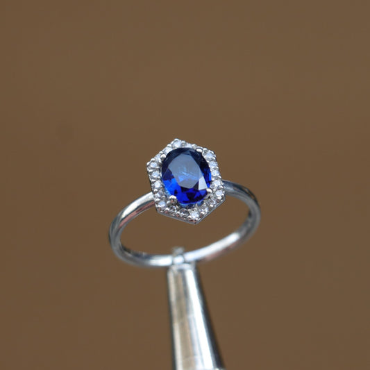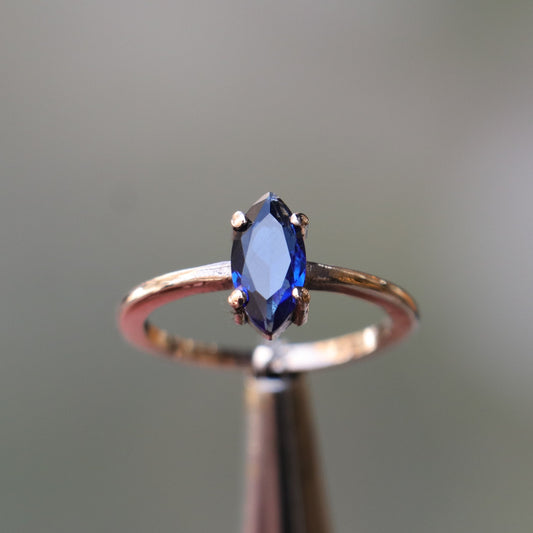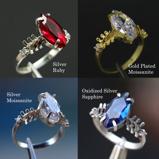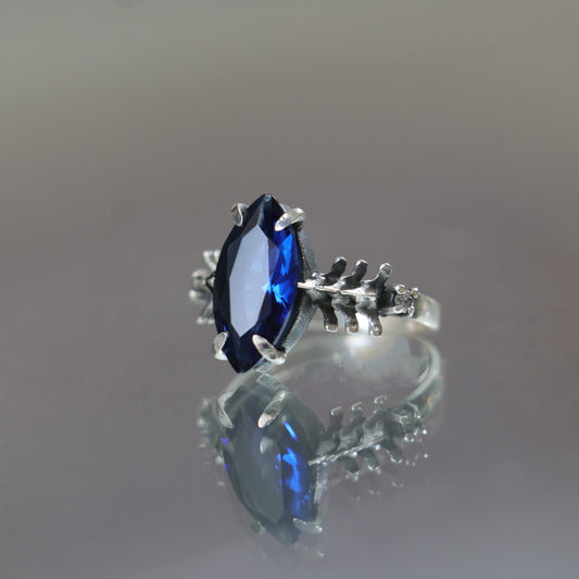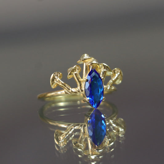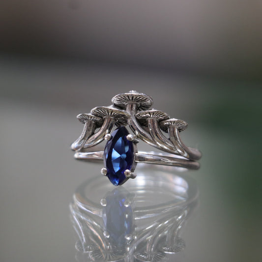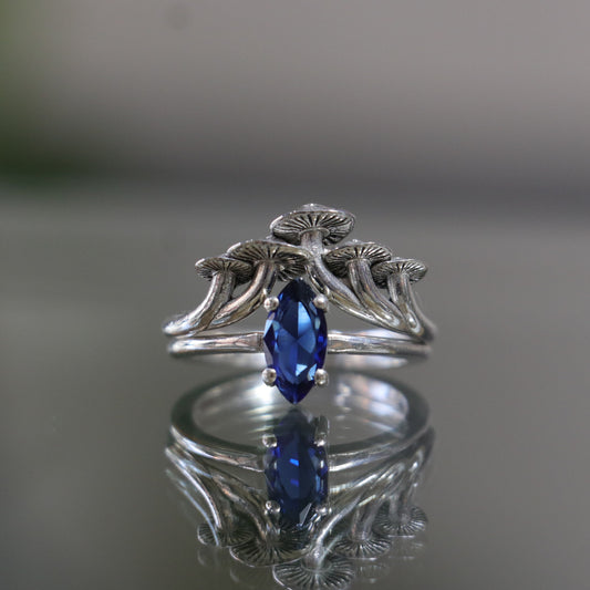 Mushroom and Marquise Lab. Sapphire Set 925 Silver Ring