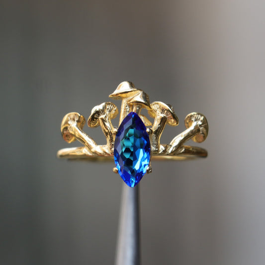 Magic Mushroom Lab. Sapphire 925 Silver Gold Plated Ring