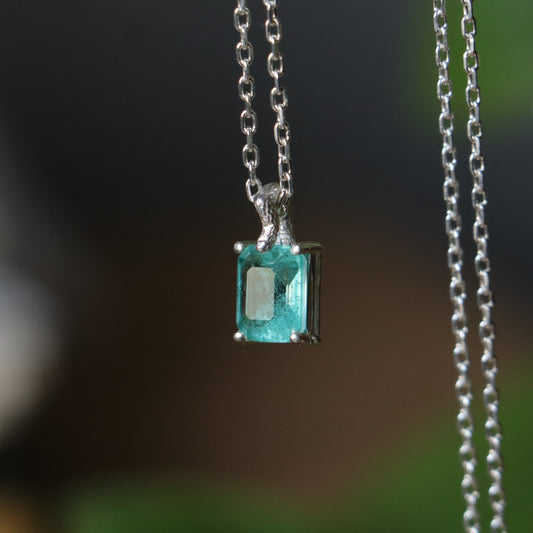 Emerald Root Emerald Snake Handle 925 Silver Necklace