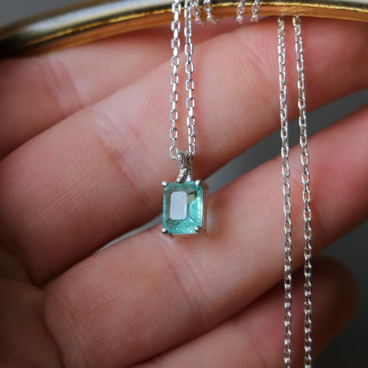 14 Carat White Gold Lab. Emerald and Moissanite Necklace