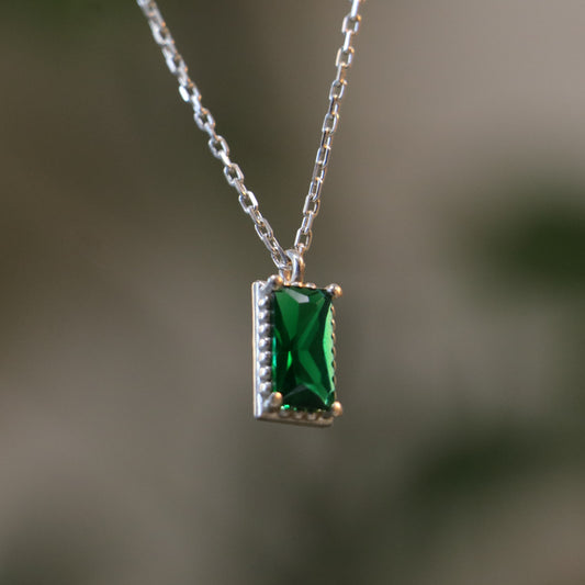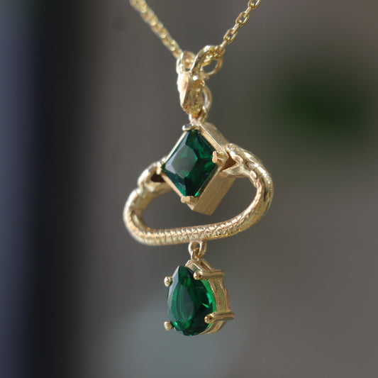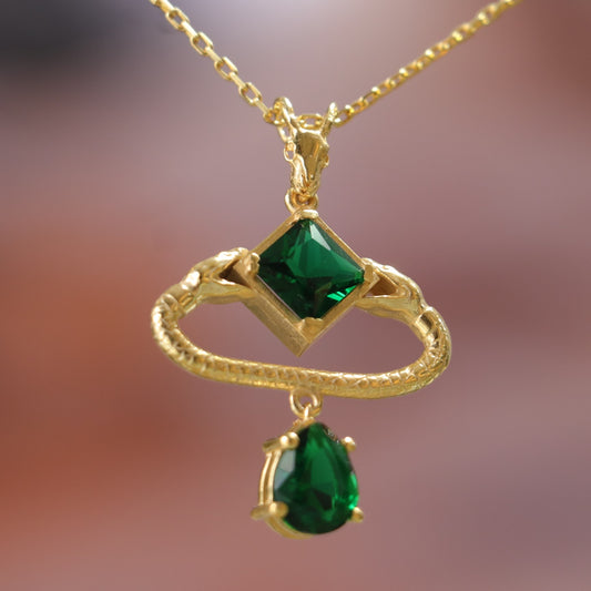 Princess Emerald Drop Pendant Double Head Snake 925 Silver Gold Plated Necklace