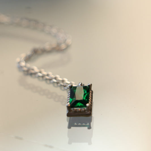 Emerald Lab. Emerald Snake Handle 925 Silver Necklace