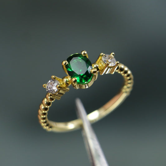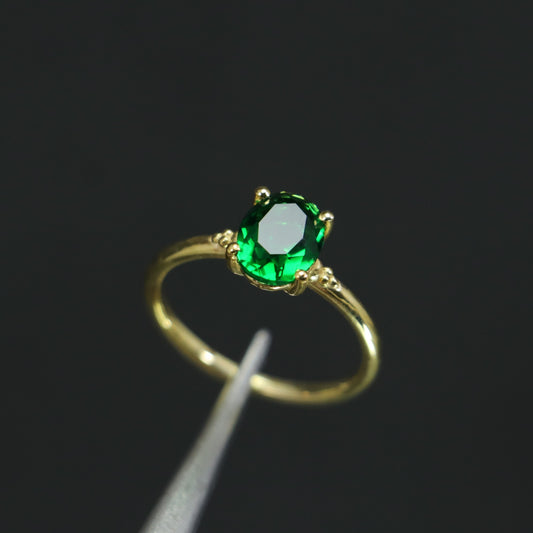 Lab. Emerald Stone Thin Daily Ring 925 Silver Gold Plated