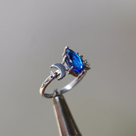 Moon Goddess Marquise Lab. Sapphire 925 Silver Ring
