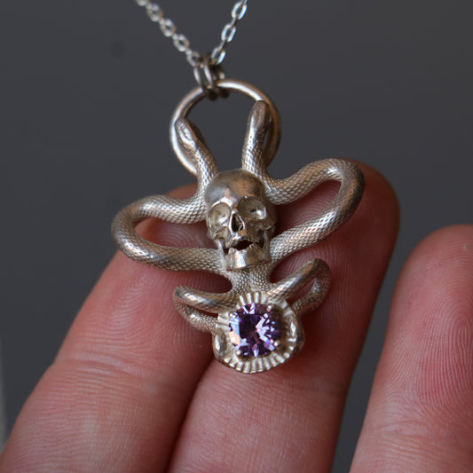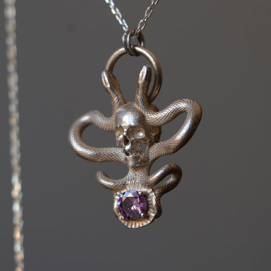 Memento Mori and Snake Amethyst Necklace