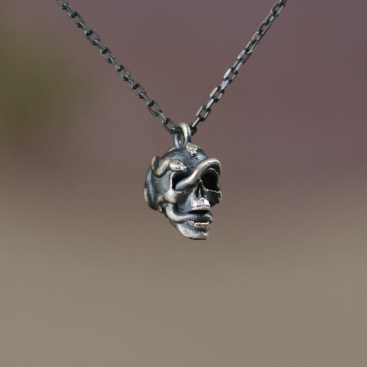 Mini Snake Skull 925 Oxidized Silver Necklace