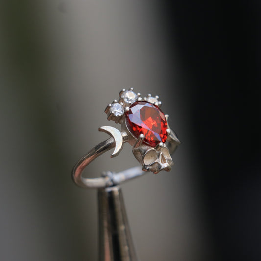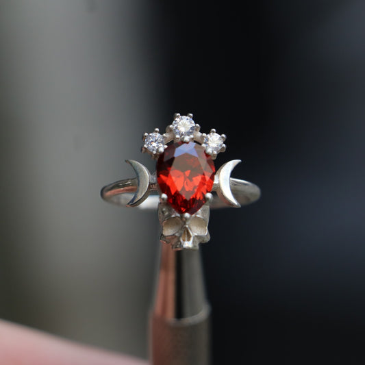 Moon Goddess Death Garnet 925 Silver Ring