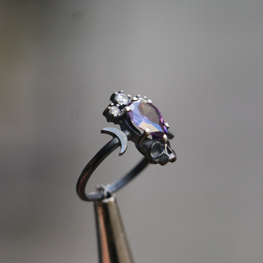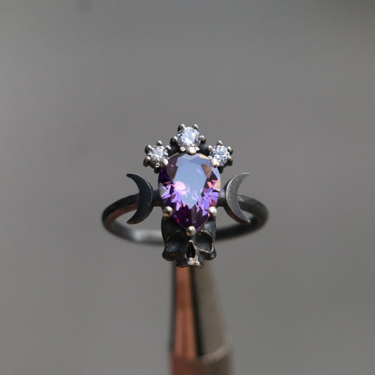 Moon Goddess Death Amethyst 925 Black Silver Ring