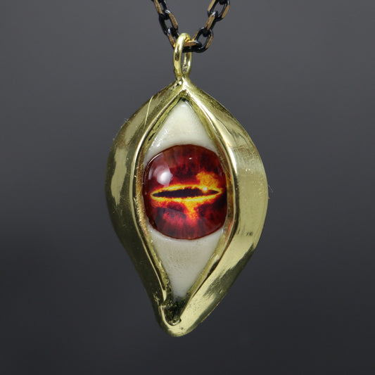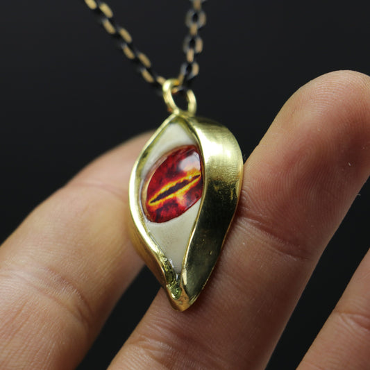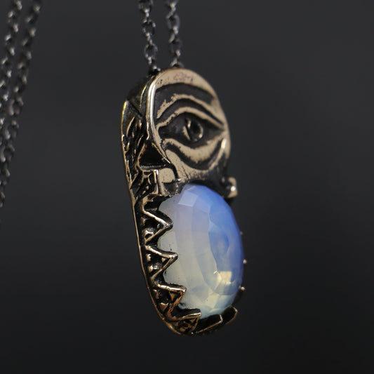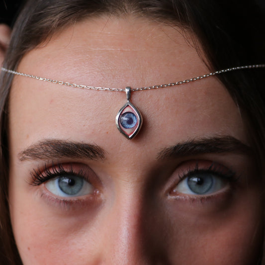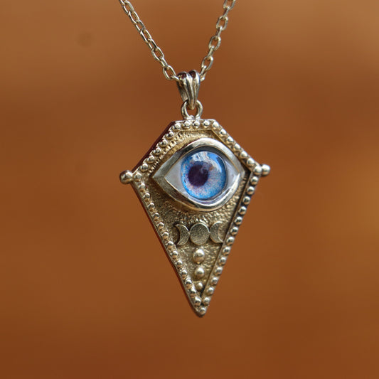 Realistic Blue Eye & Triple Moon Necklace | Handmade Mystical Silver & Brass Talisman