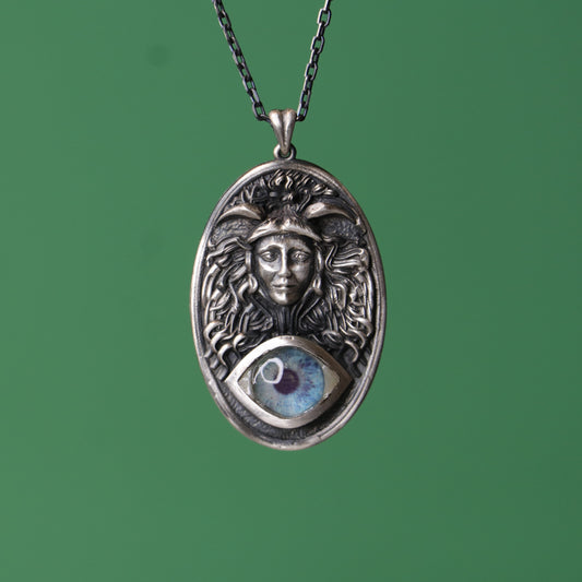 Medusa Memento Mori Blue Eye 925 Silver Necklace