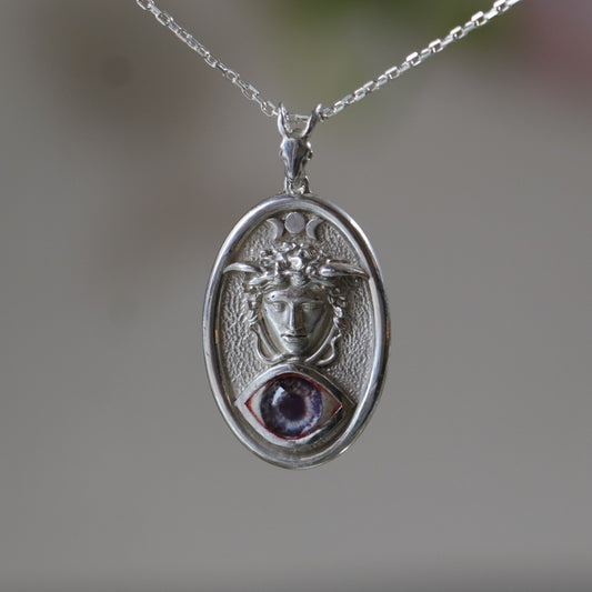 Hecate Moon Goddess Green Eye 925 Silver Necklace