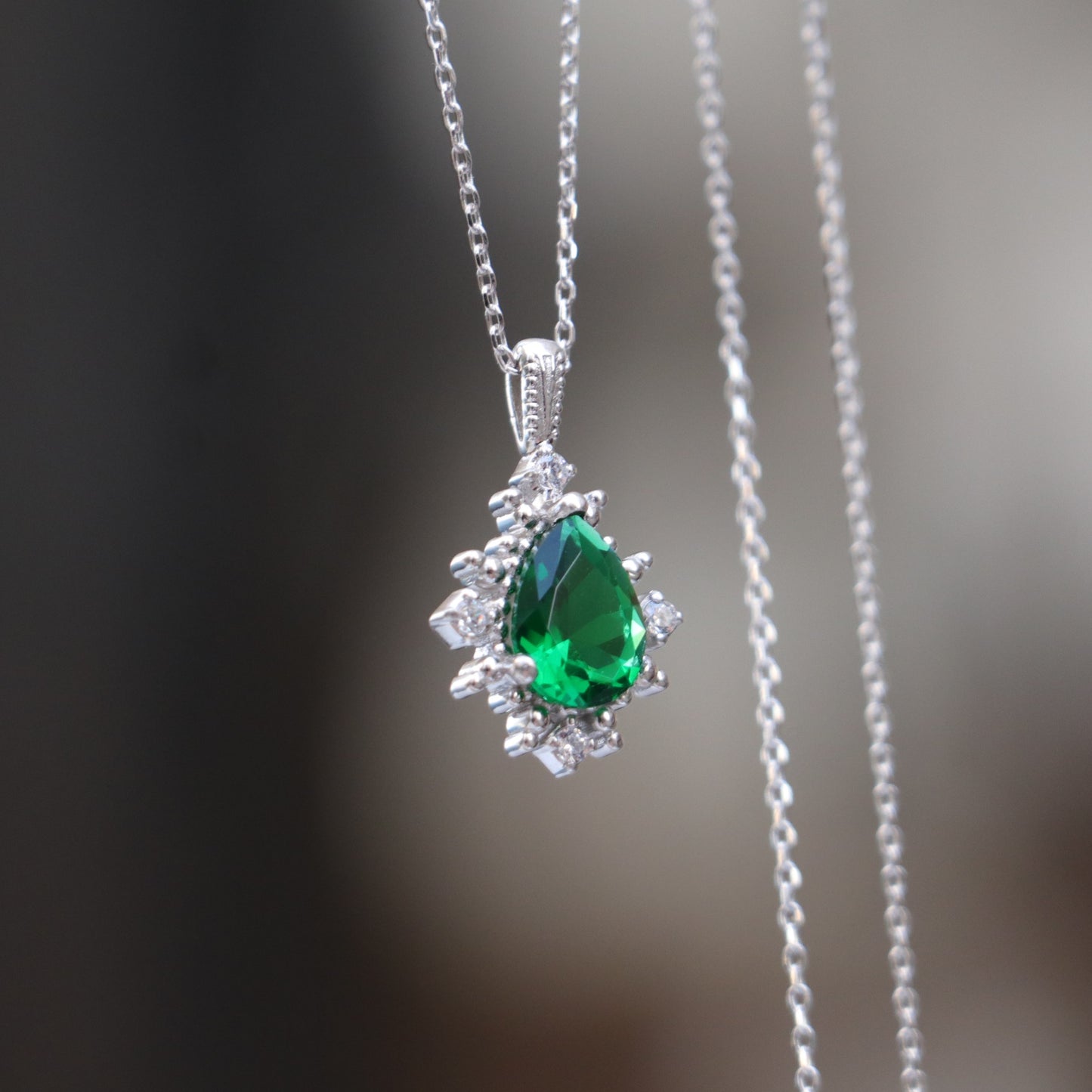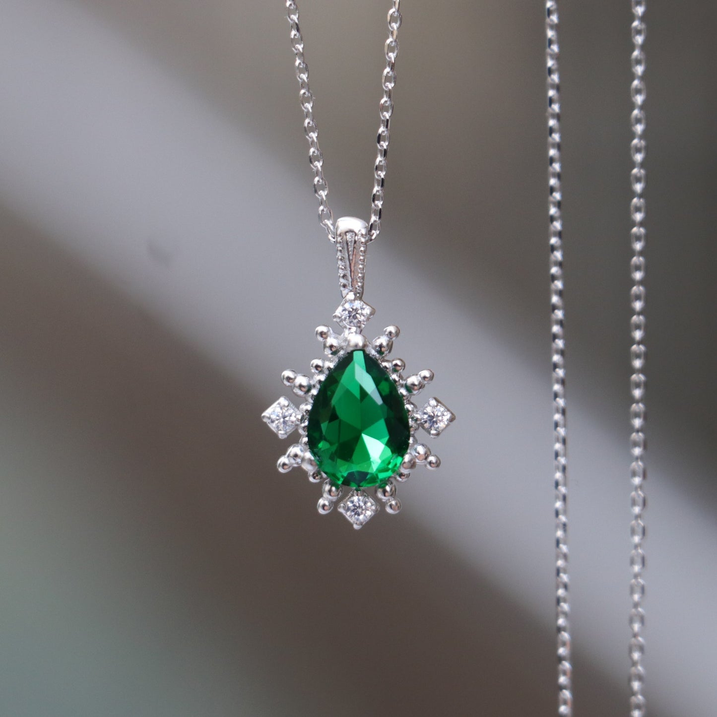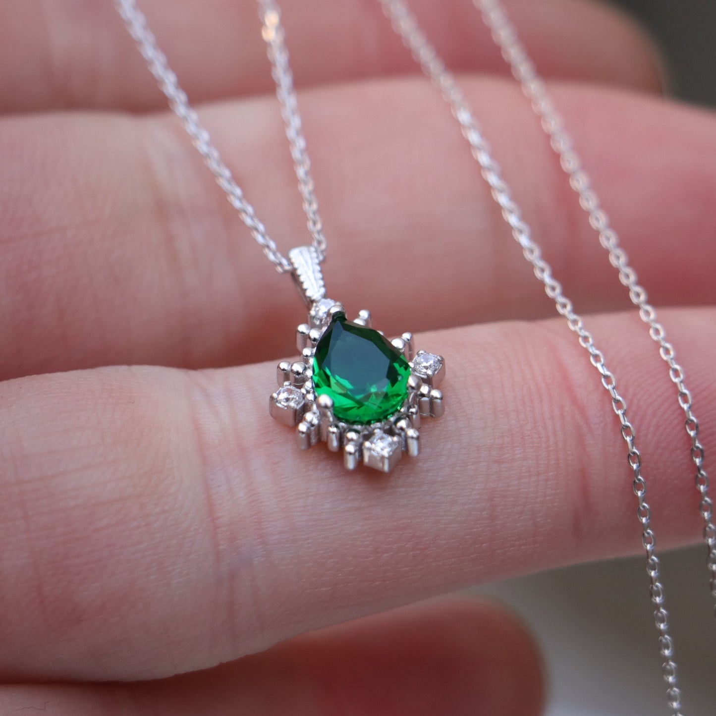 14 Carat White Gold Lab. Emerald and Moissanite Necklace