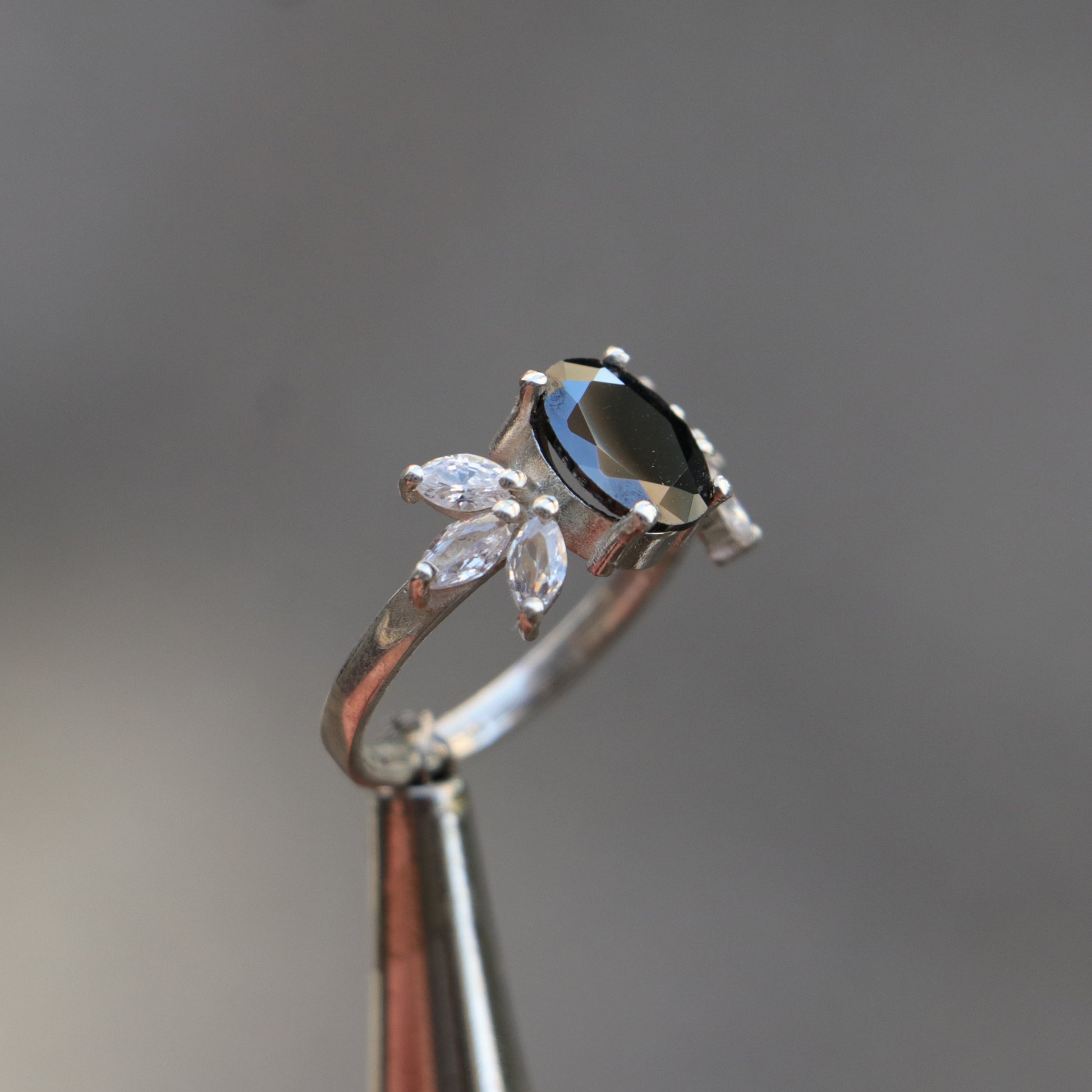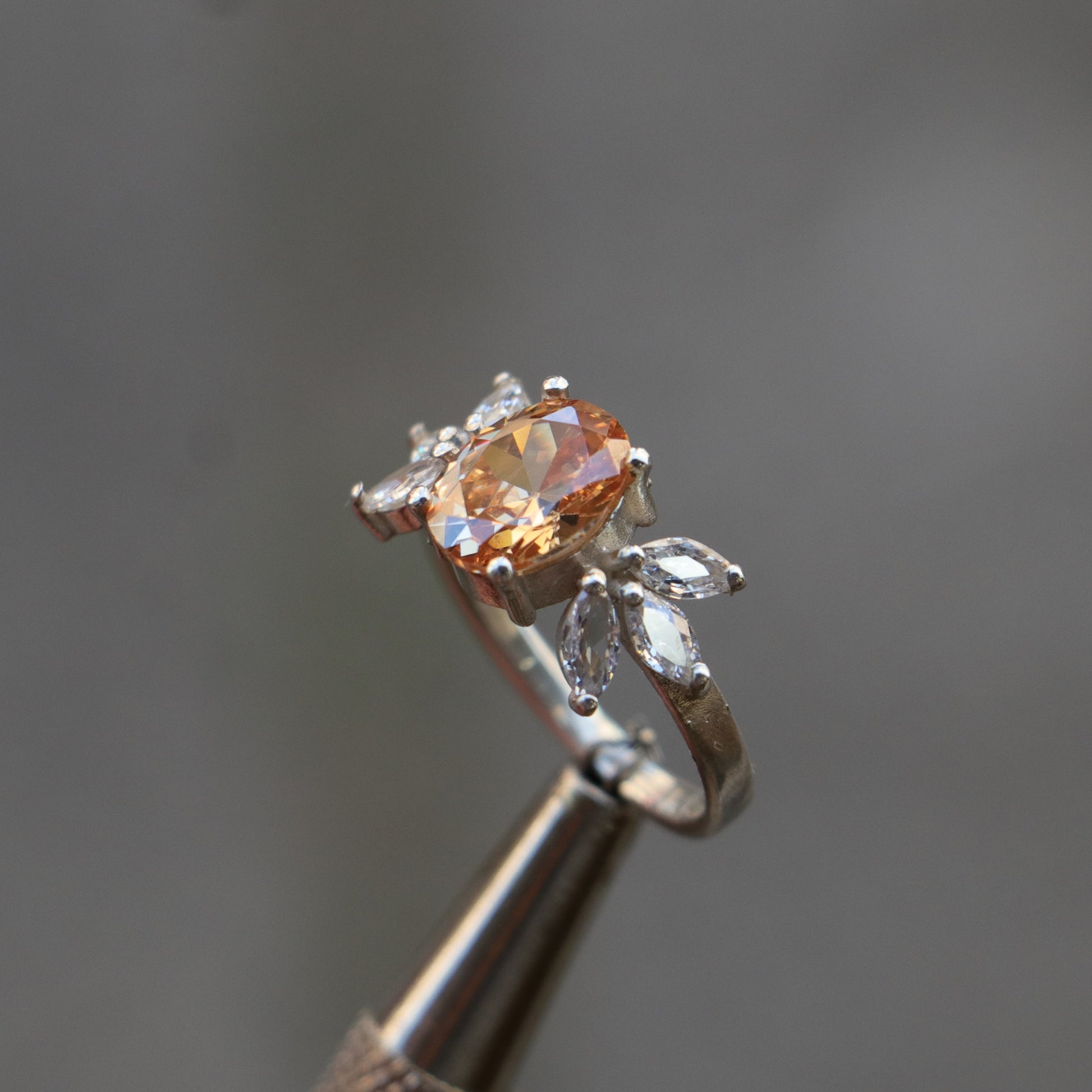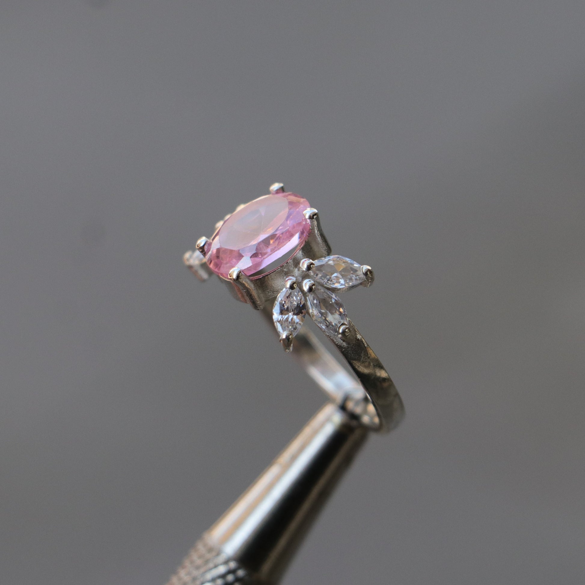 Oval Rose Quartz and Marquise Moissanite 925 Silver Ring