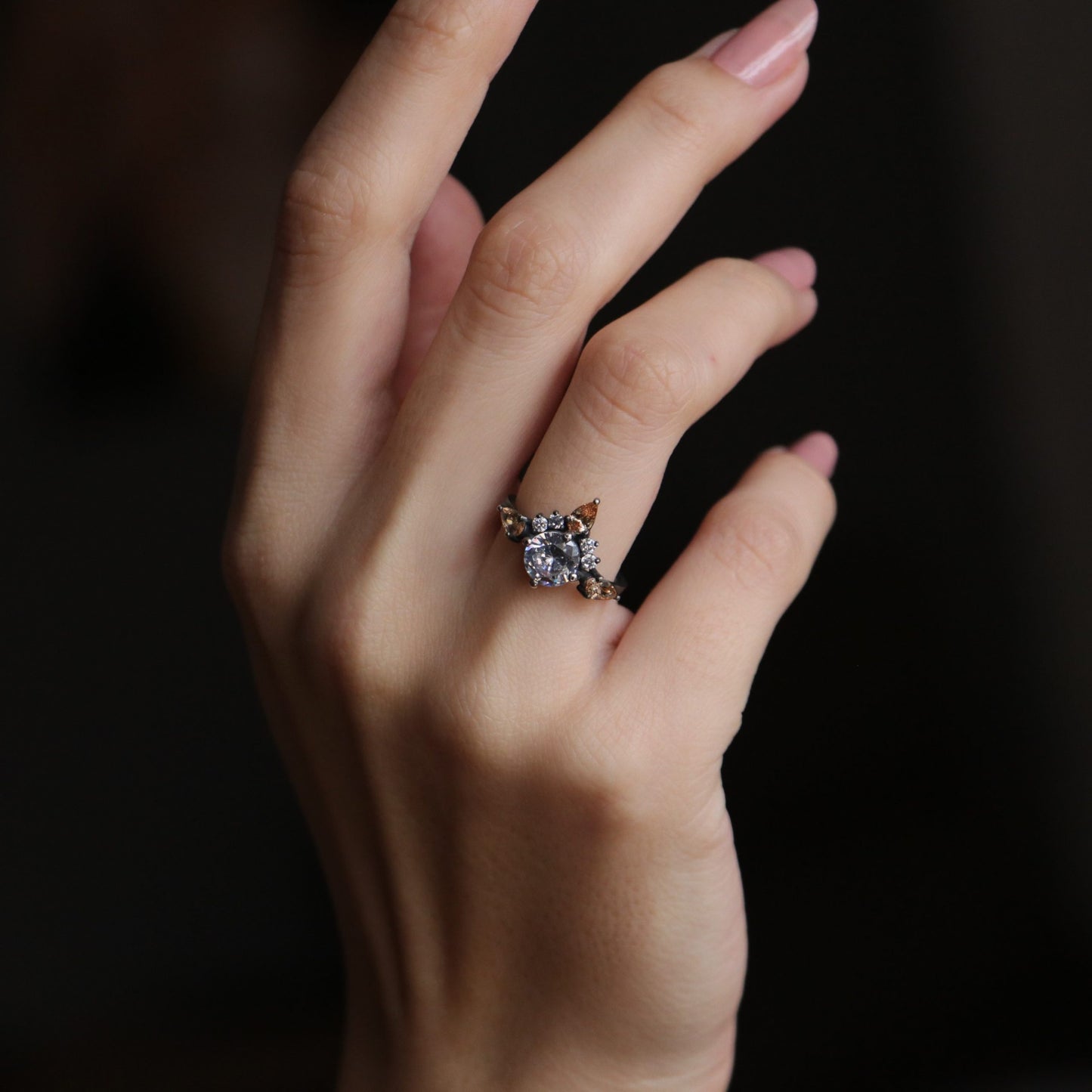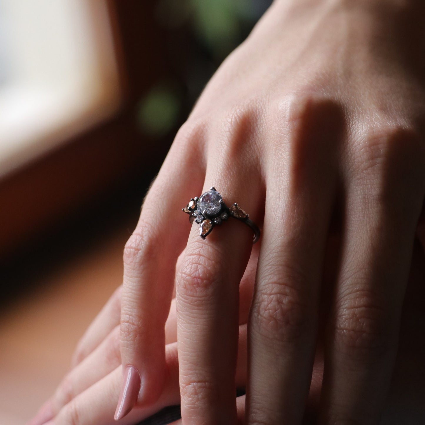 In my designs, which are improvised with the emotions felt by the raw, natural stones I use, I combine the stones with the "nailing" technique, which is also an old-school craft, without using any chemical ingredients.