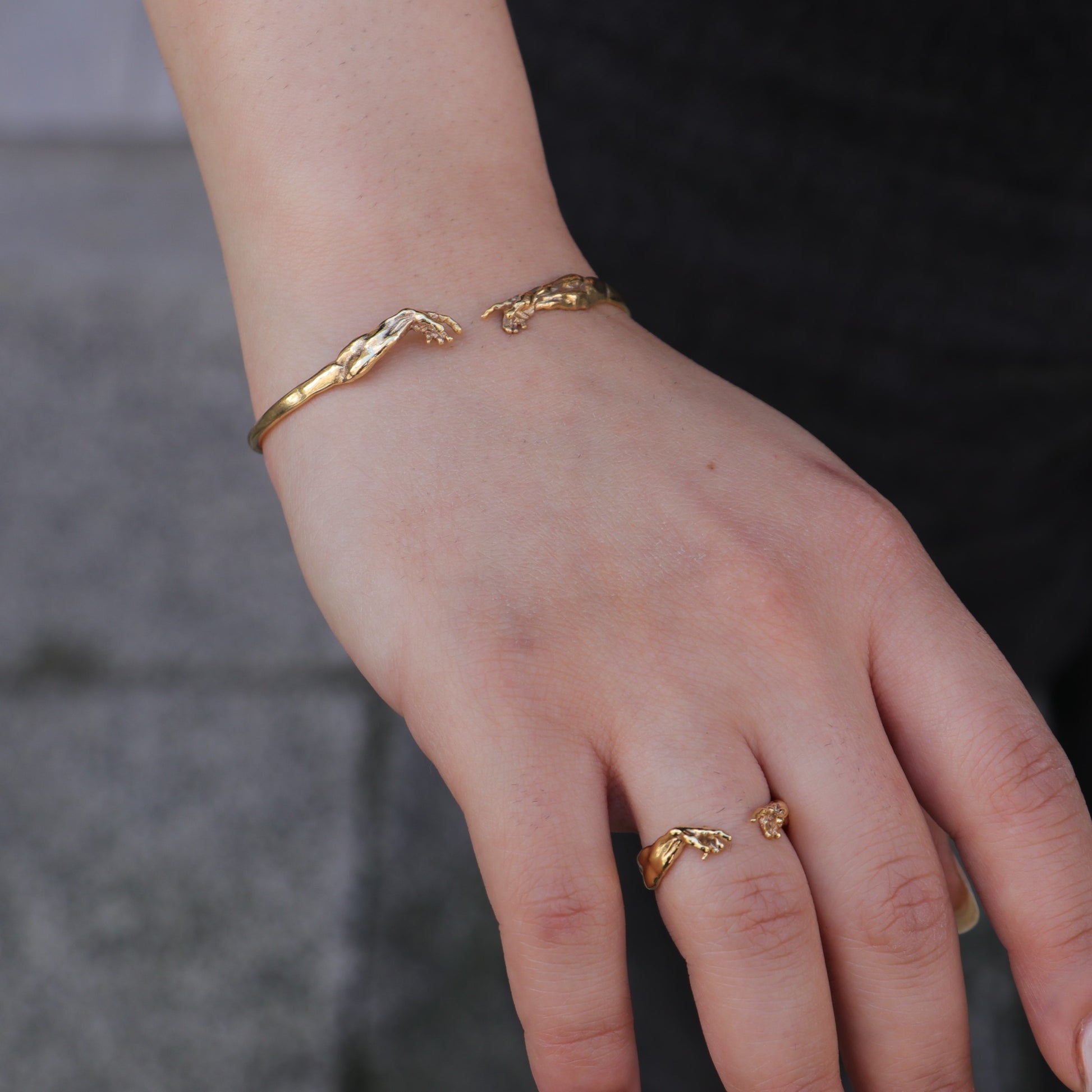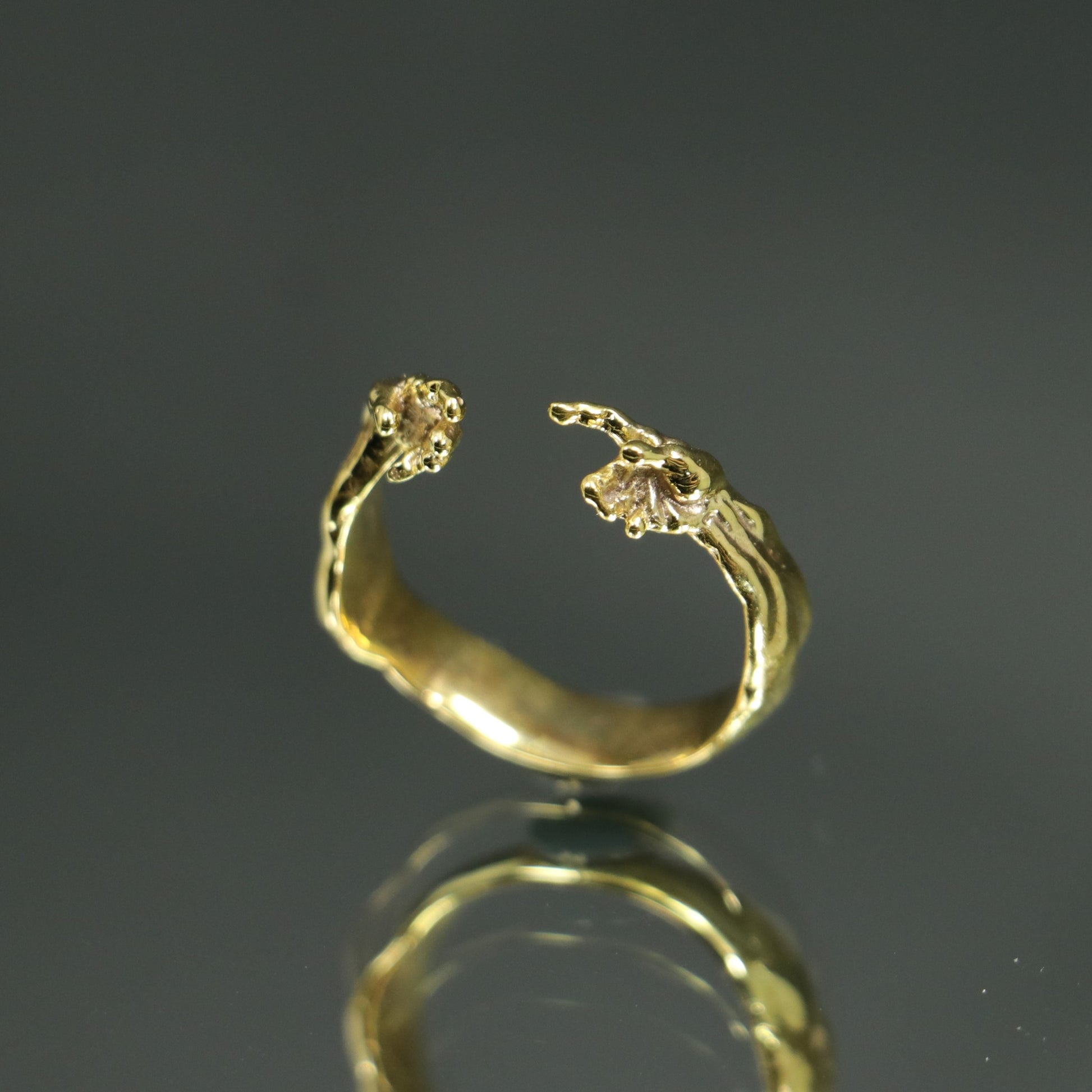 In my designs, which are improvised with the emotions felt by the raw, natural stones I use, I combine the stones with the "nailing" technique, which is also an old-school craft, without using any chemical ingredients.