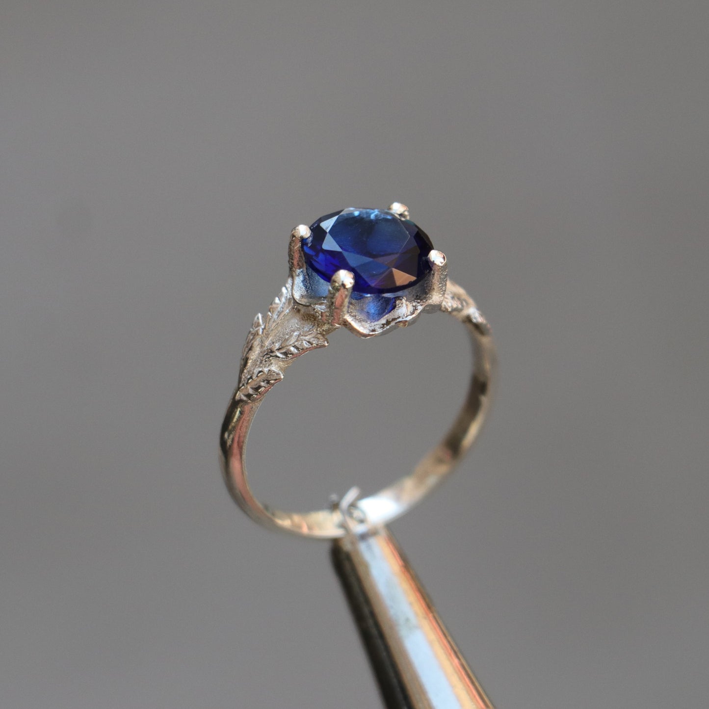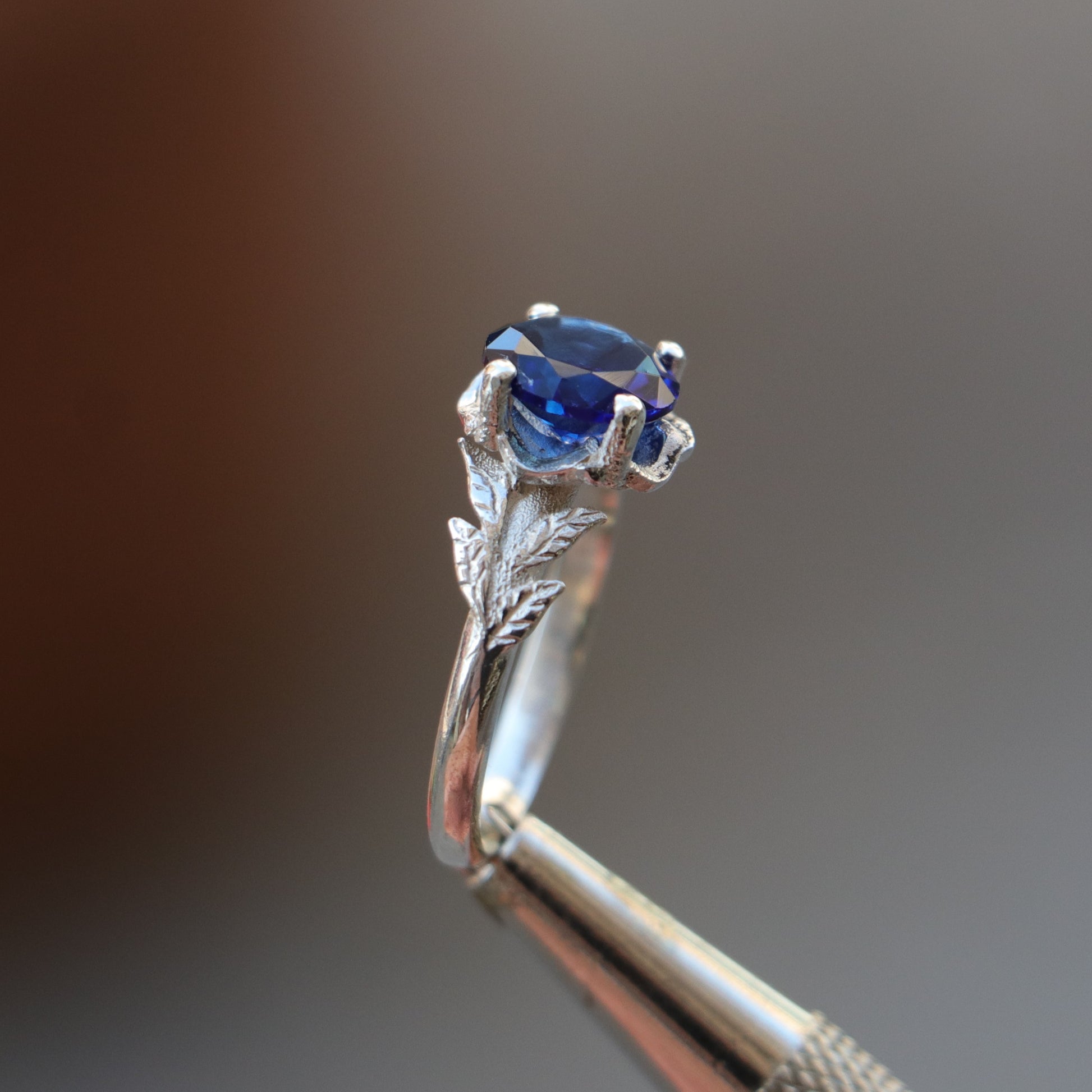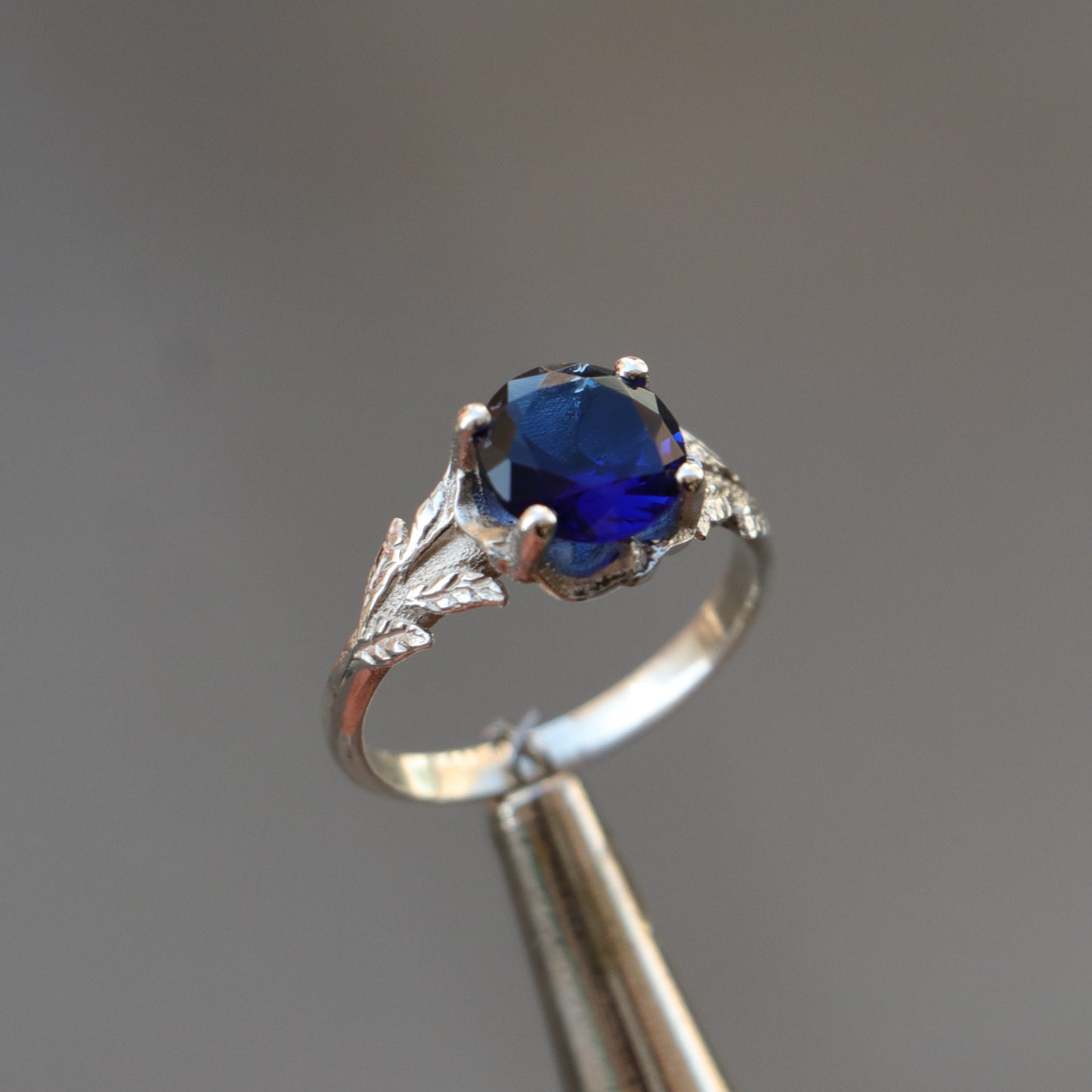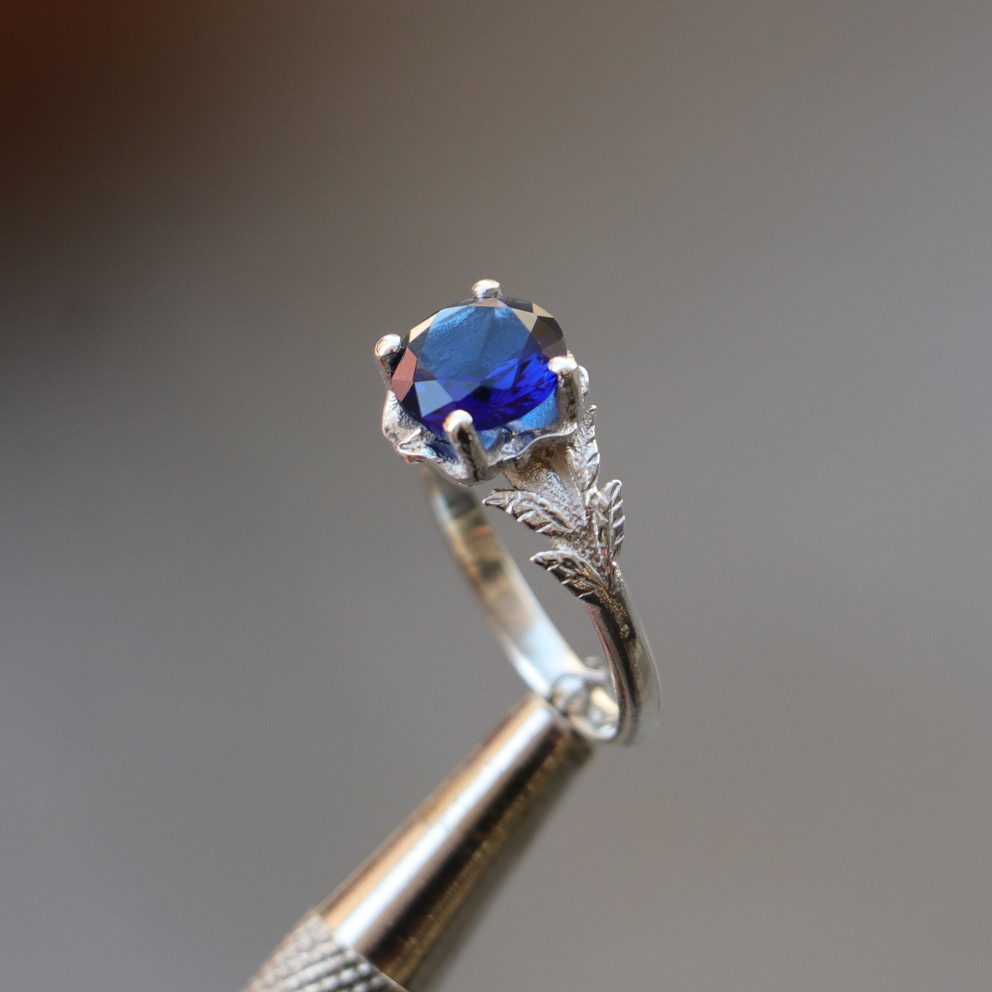 925 Silver Rose Gold Plated Ring with Aquamarine Stone and Leaf Detail