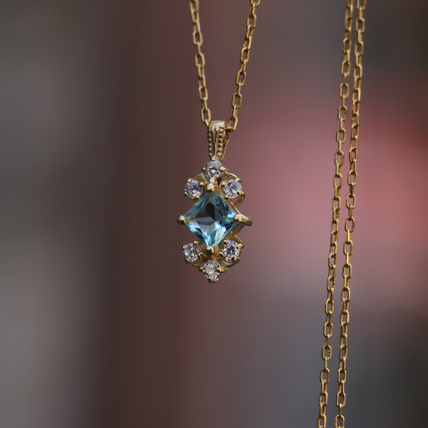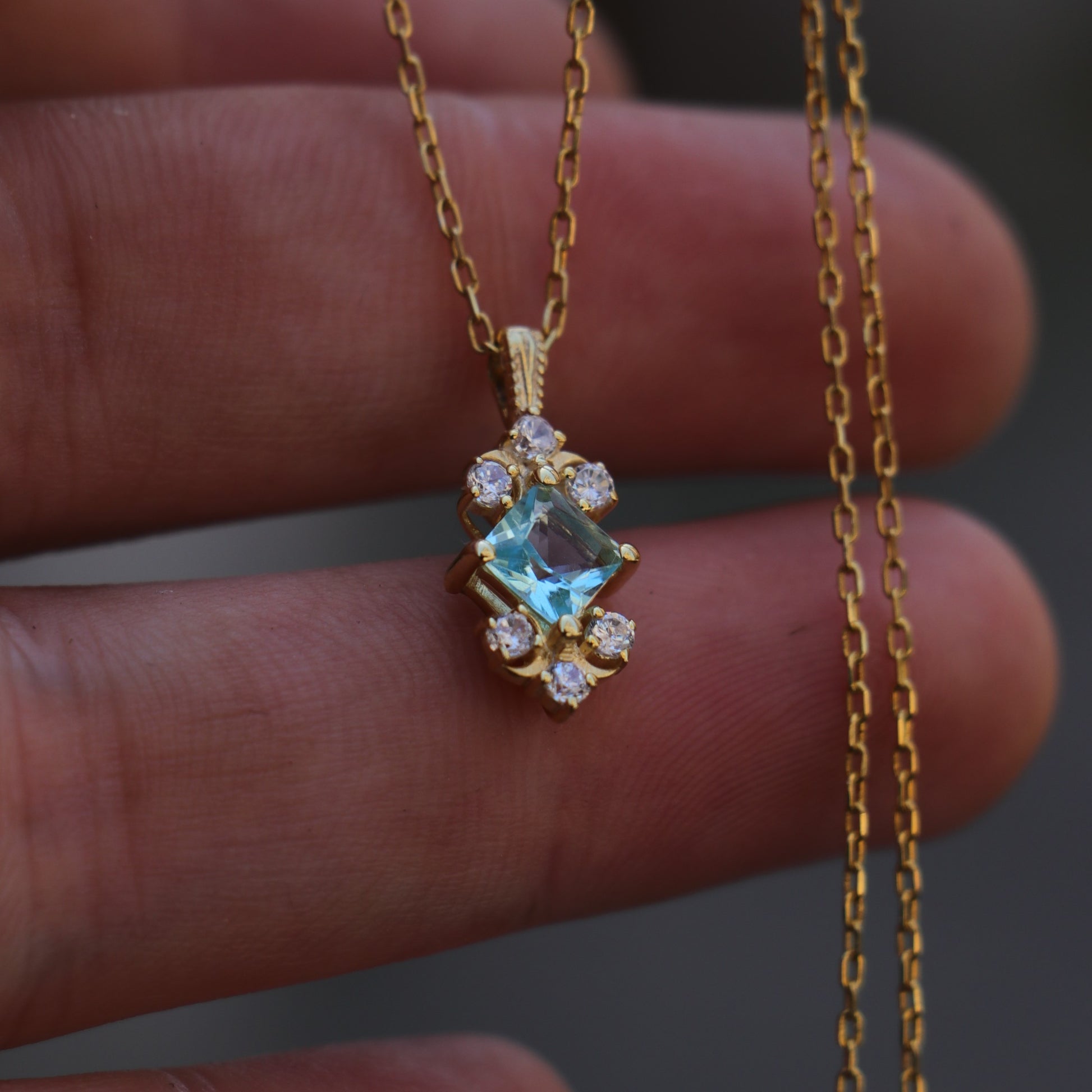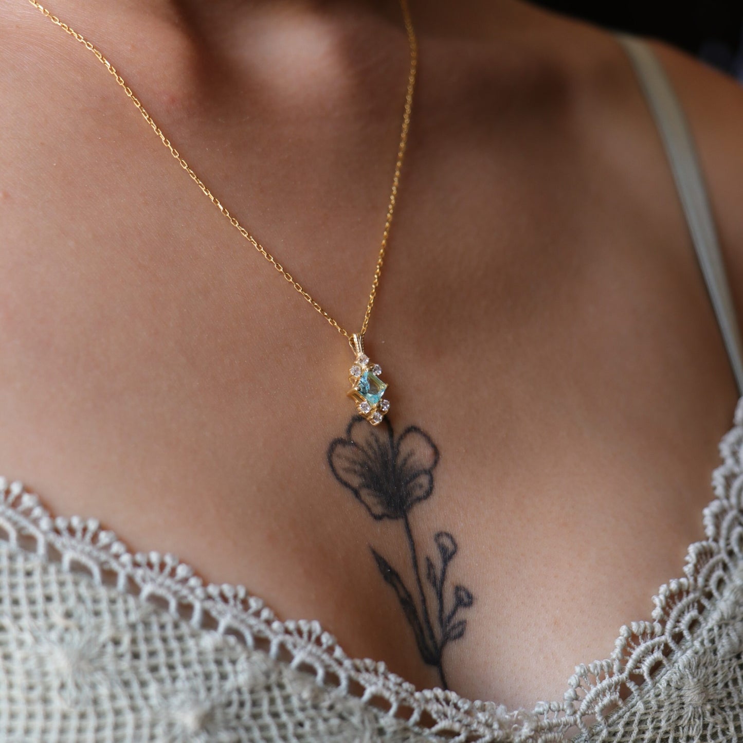 Aquamarine and Moissanite 925 Silver Gold Plated Necklace