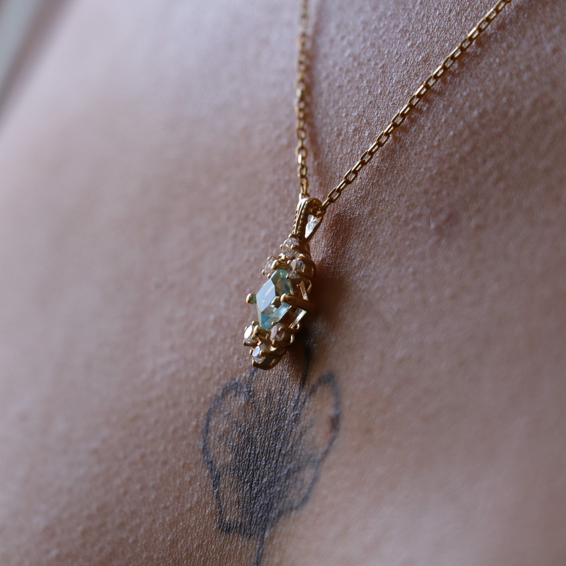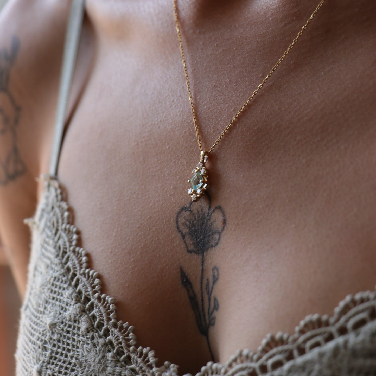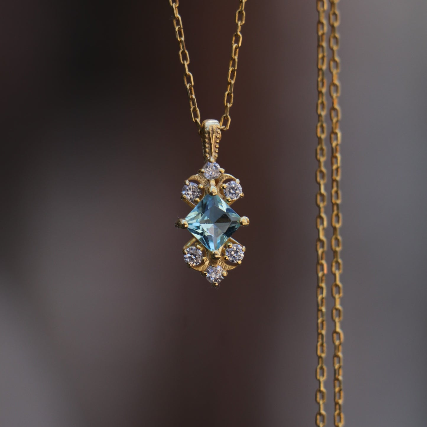 Aquamarine and Moissanite 925 Silver Gold Plated Necklace