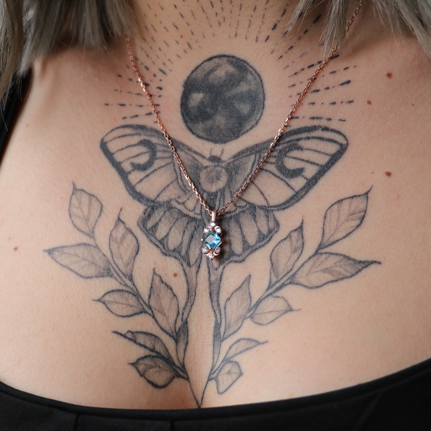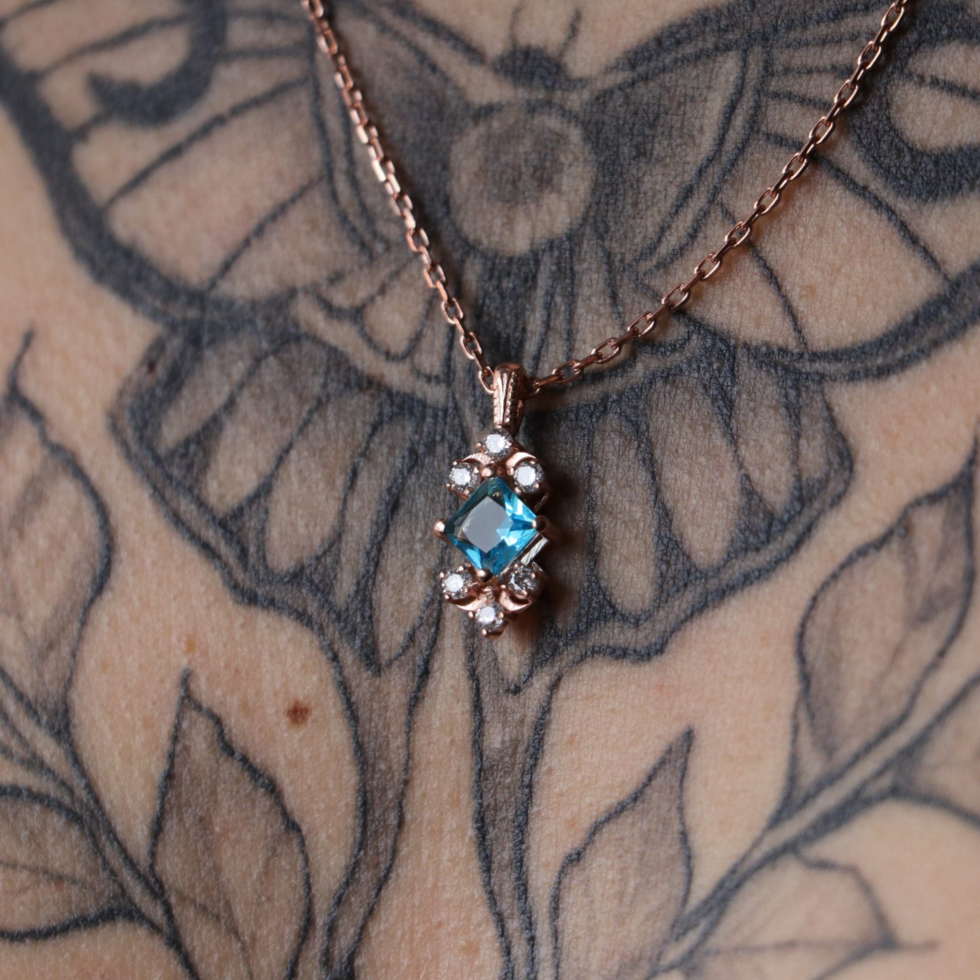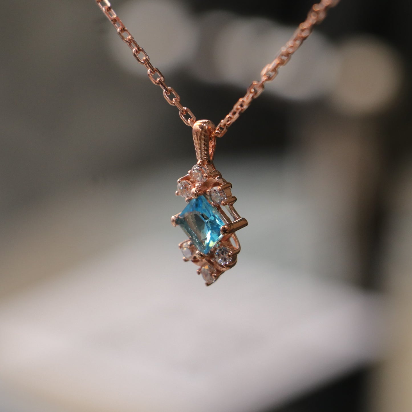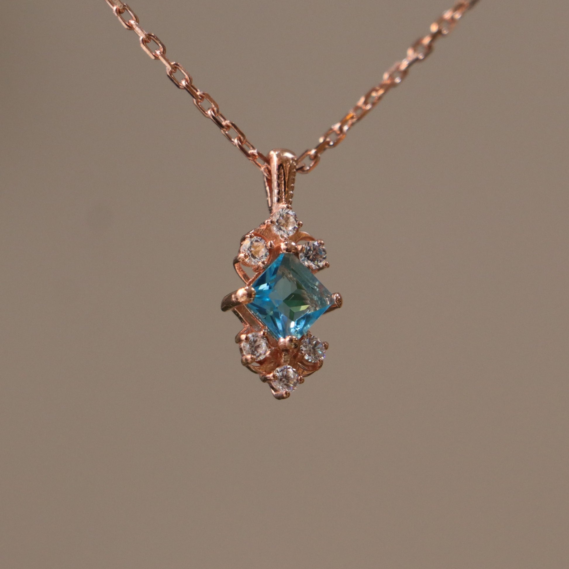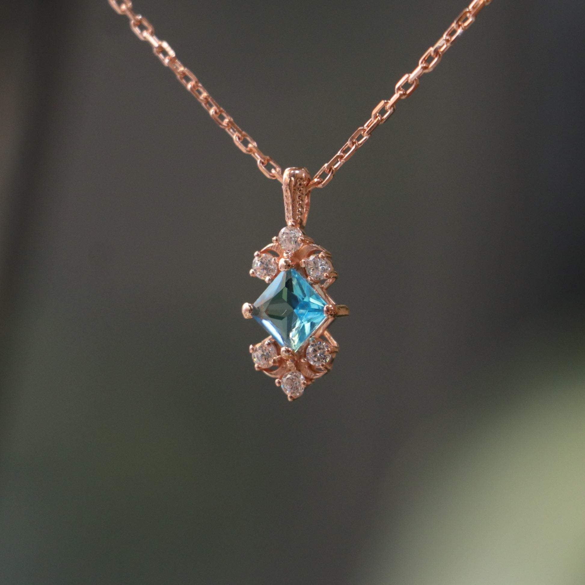 Aquamarine and Moissanite 925 Silver Rose Gold Plated Necklace