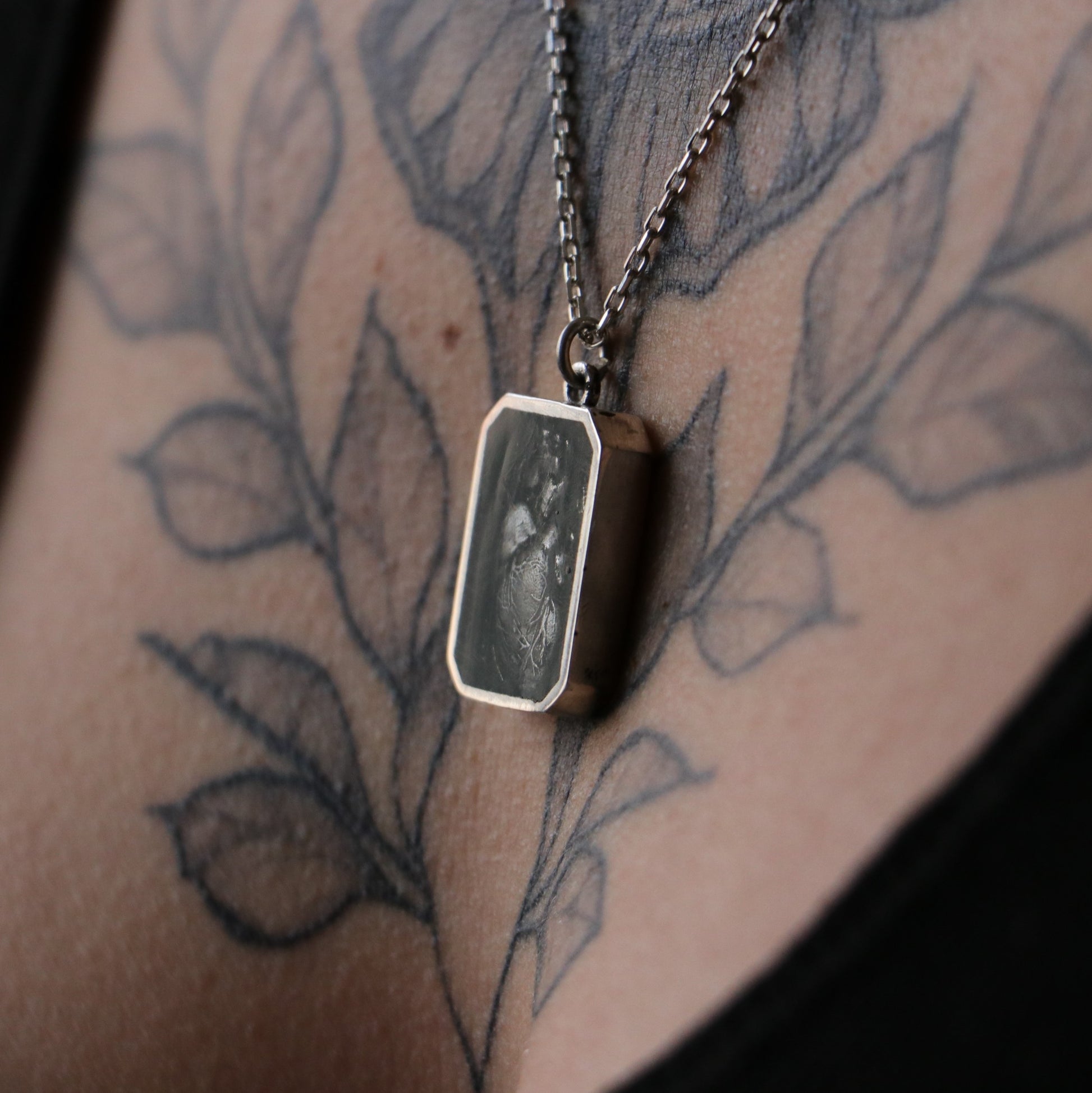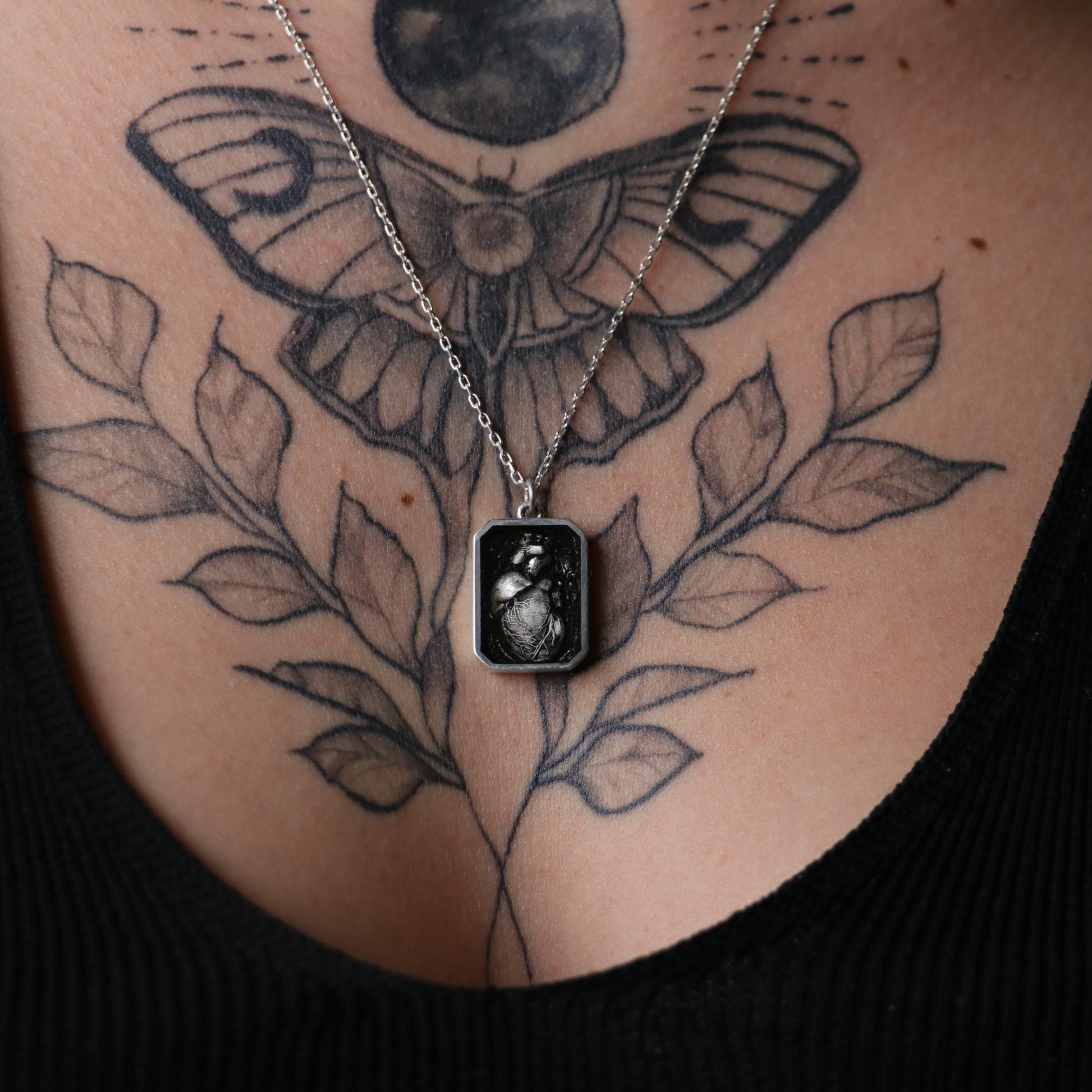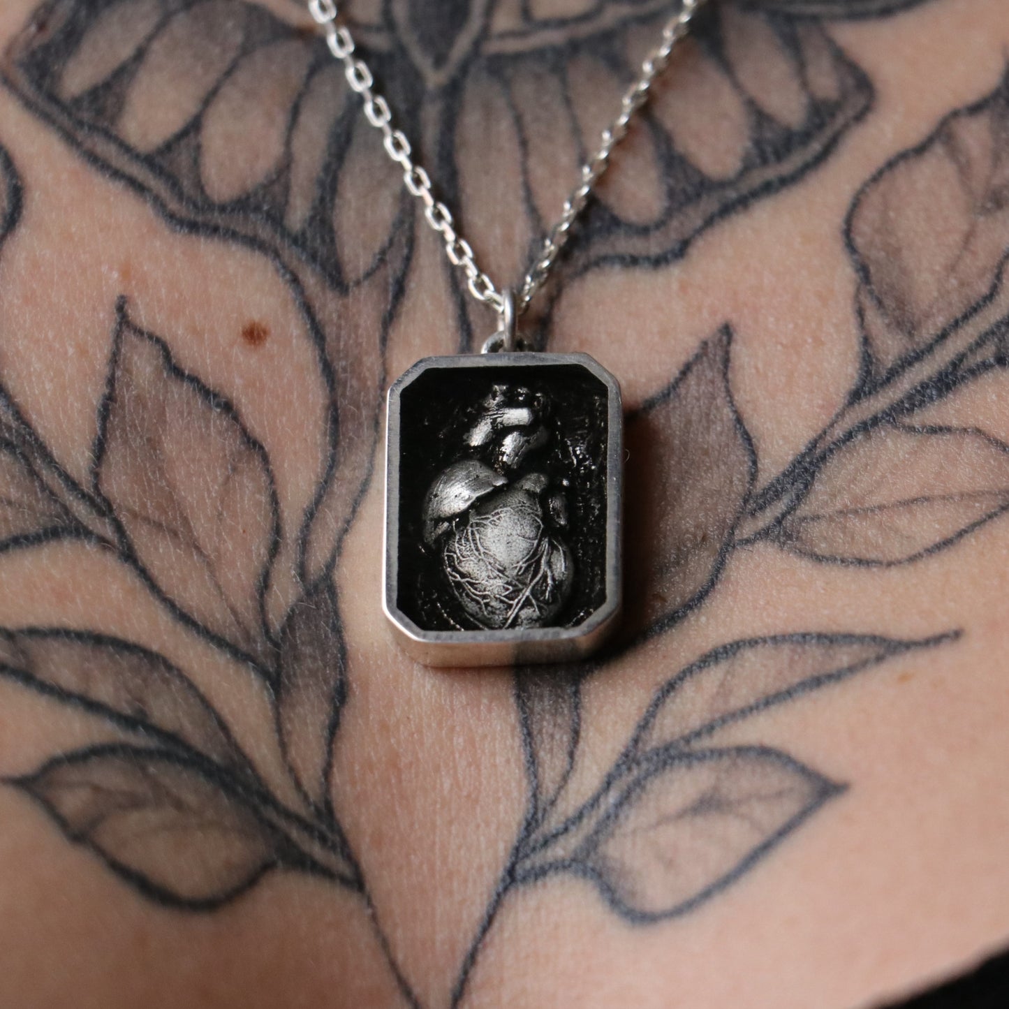 I oxidize and darken the bronze metal I use when creating my designs to give it an aged appearance and to make it look as if it had come out of the ground.