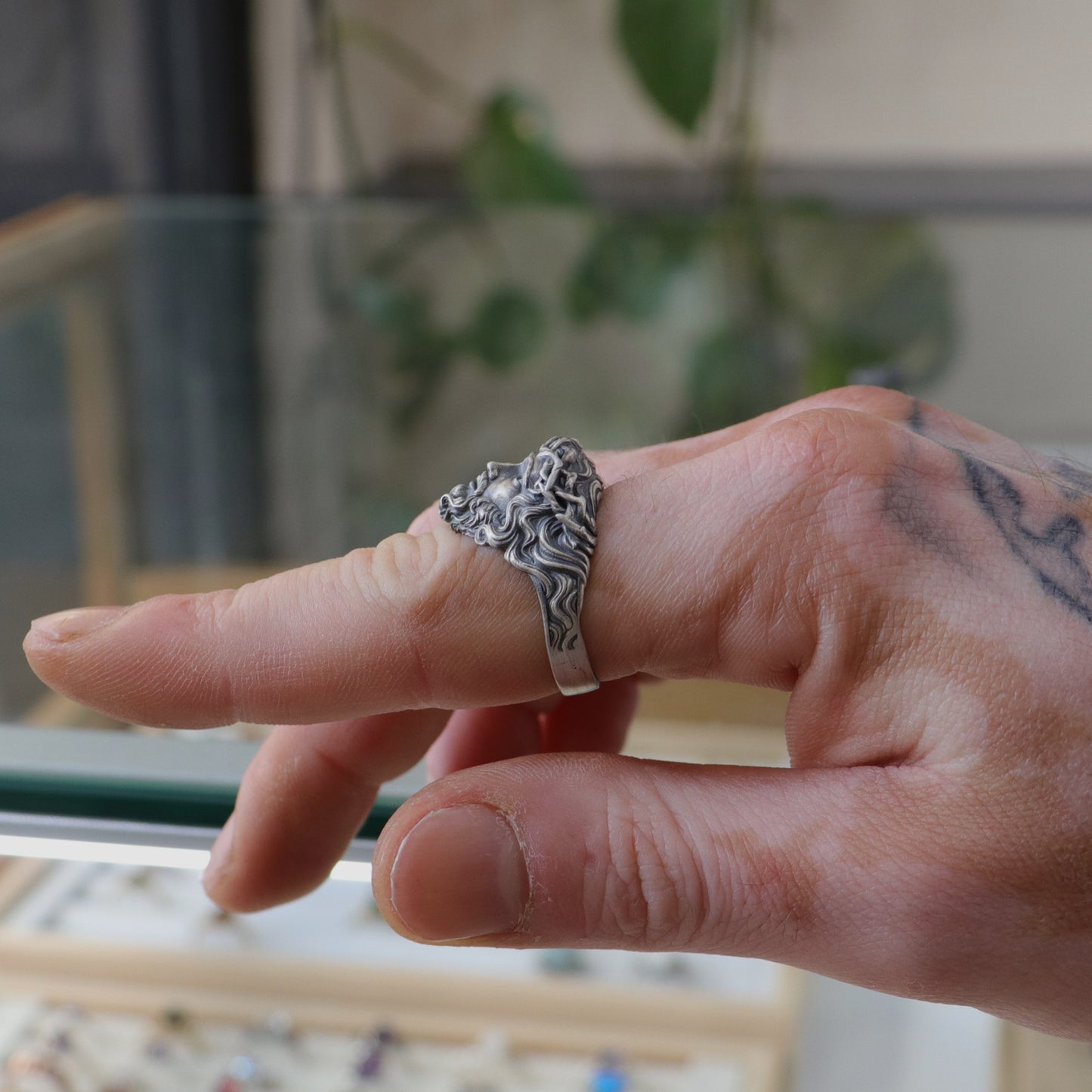 In my designs, which are improvised with the emotions felt by the raw, natural stones I use, I combine the stones with the "nailing" technique, which is also an old-school craft, without using any chemical ingredients.