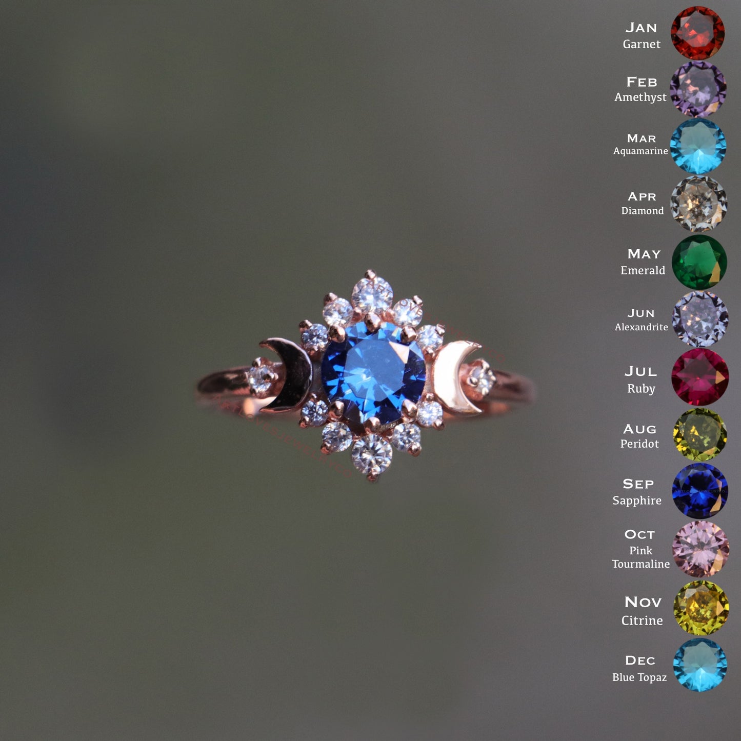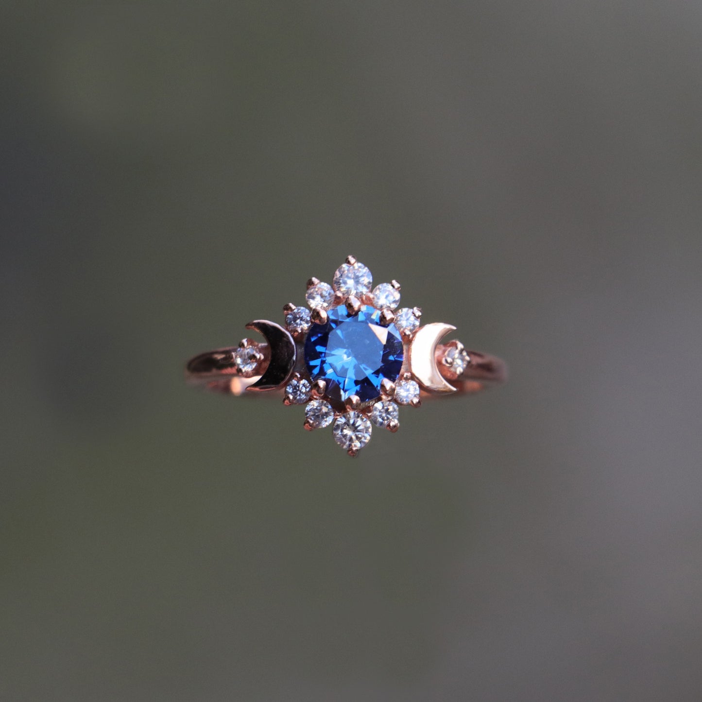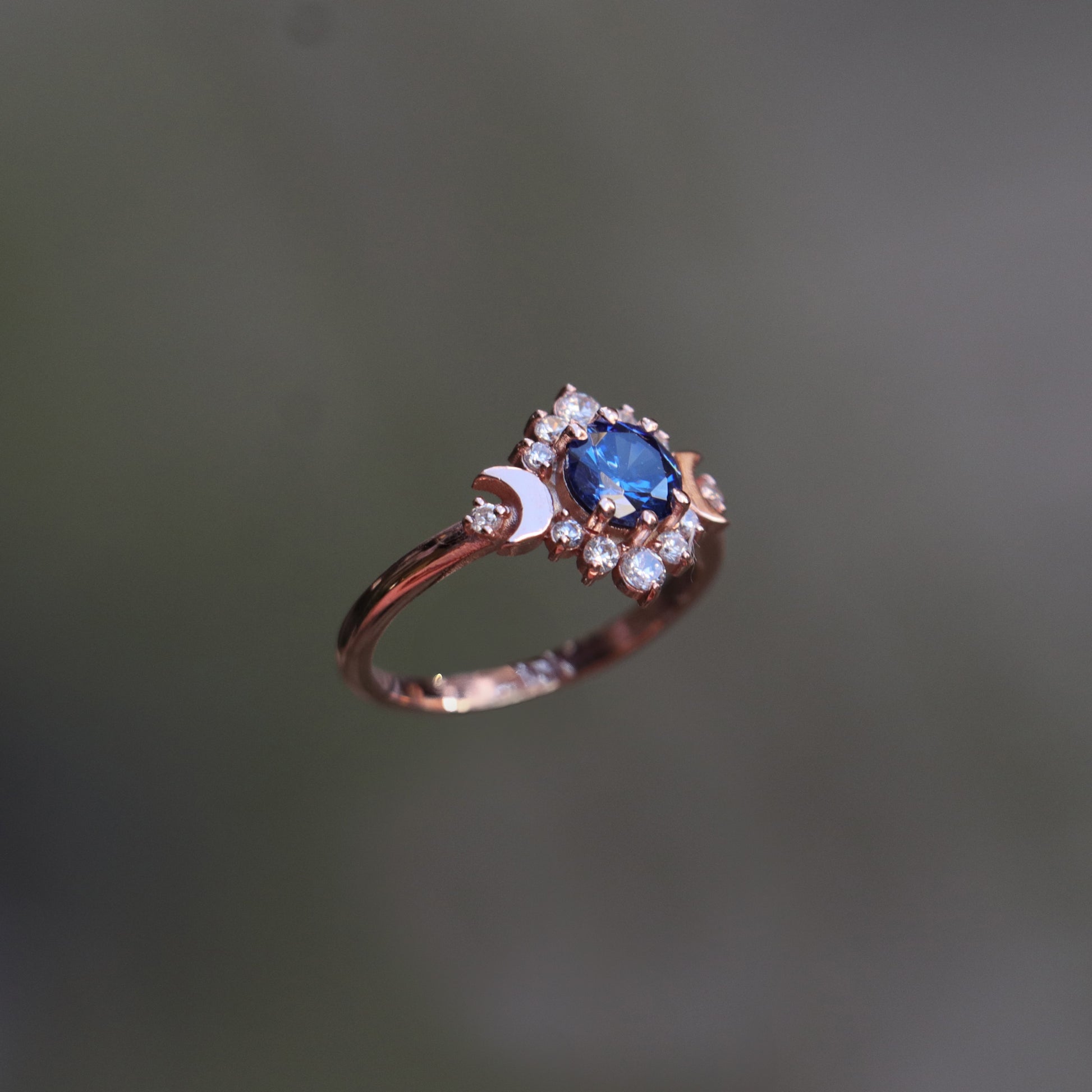 Moon Goddess Sapphire and Moissanite 925 Silver Ring