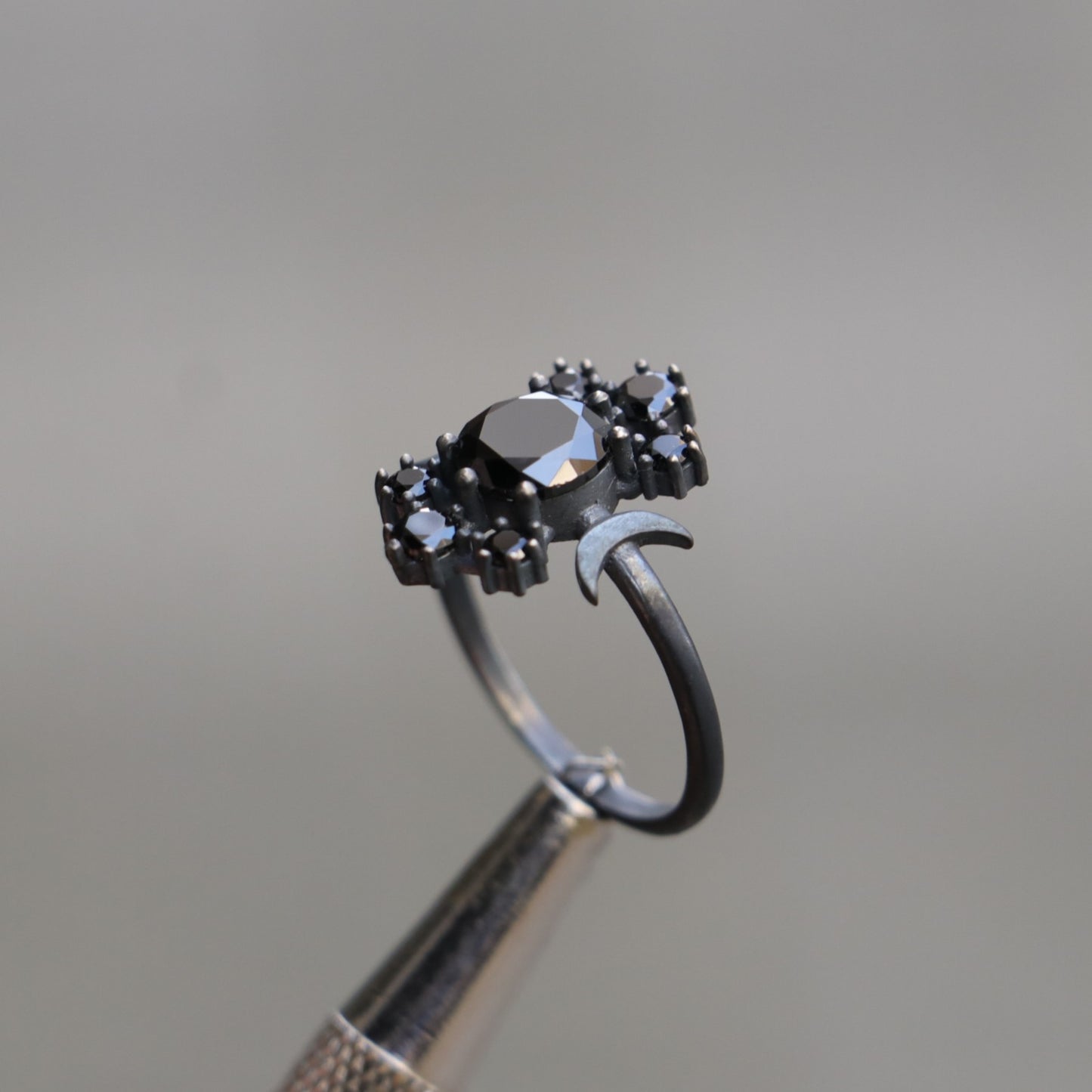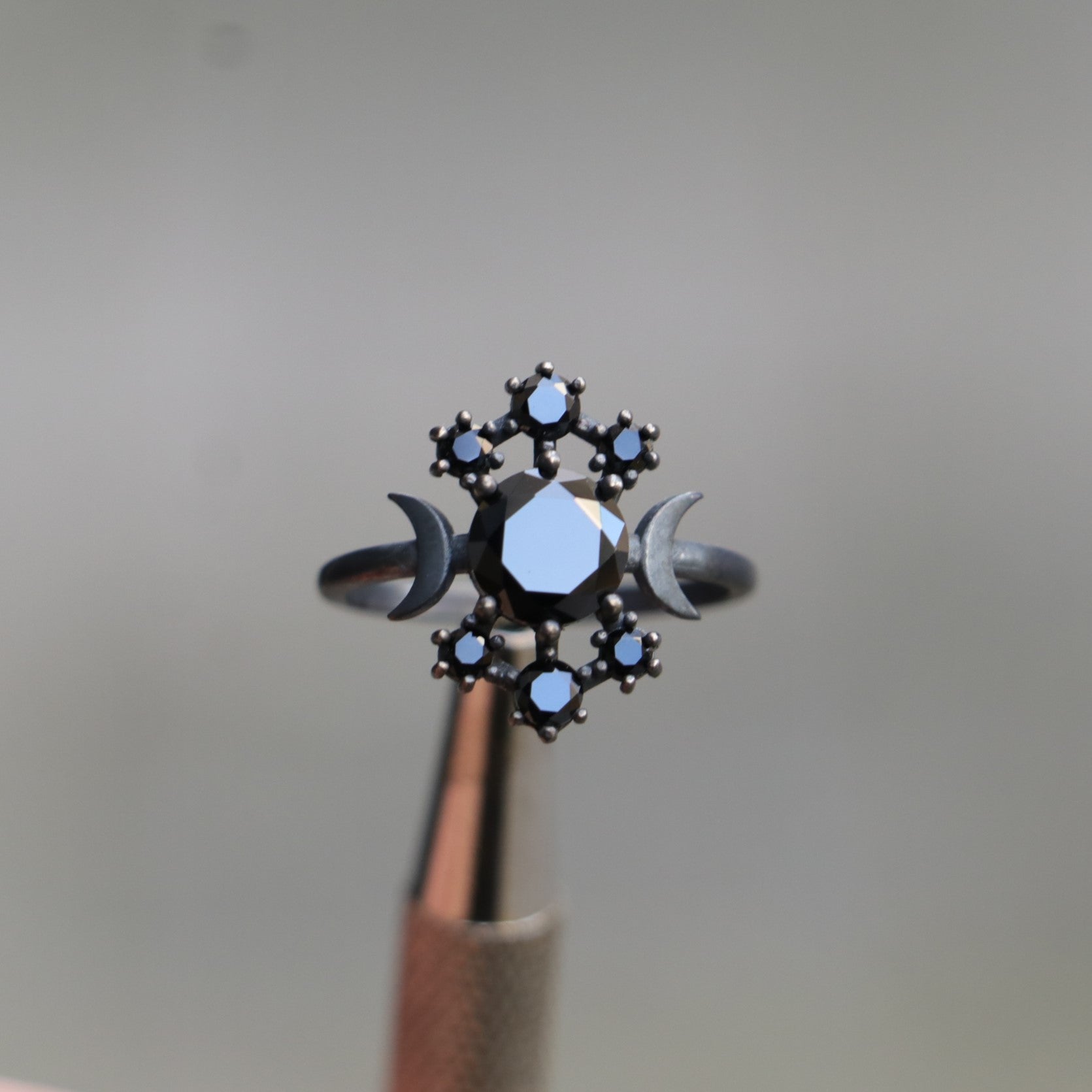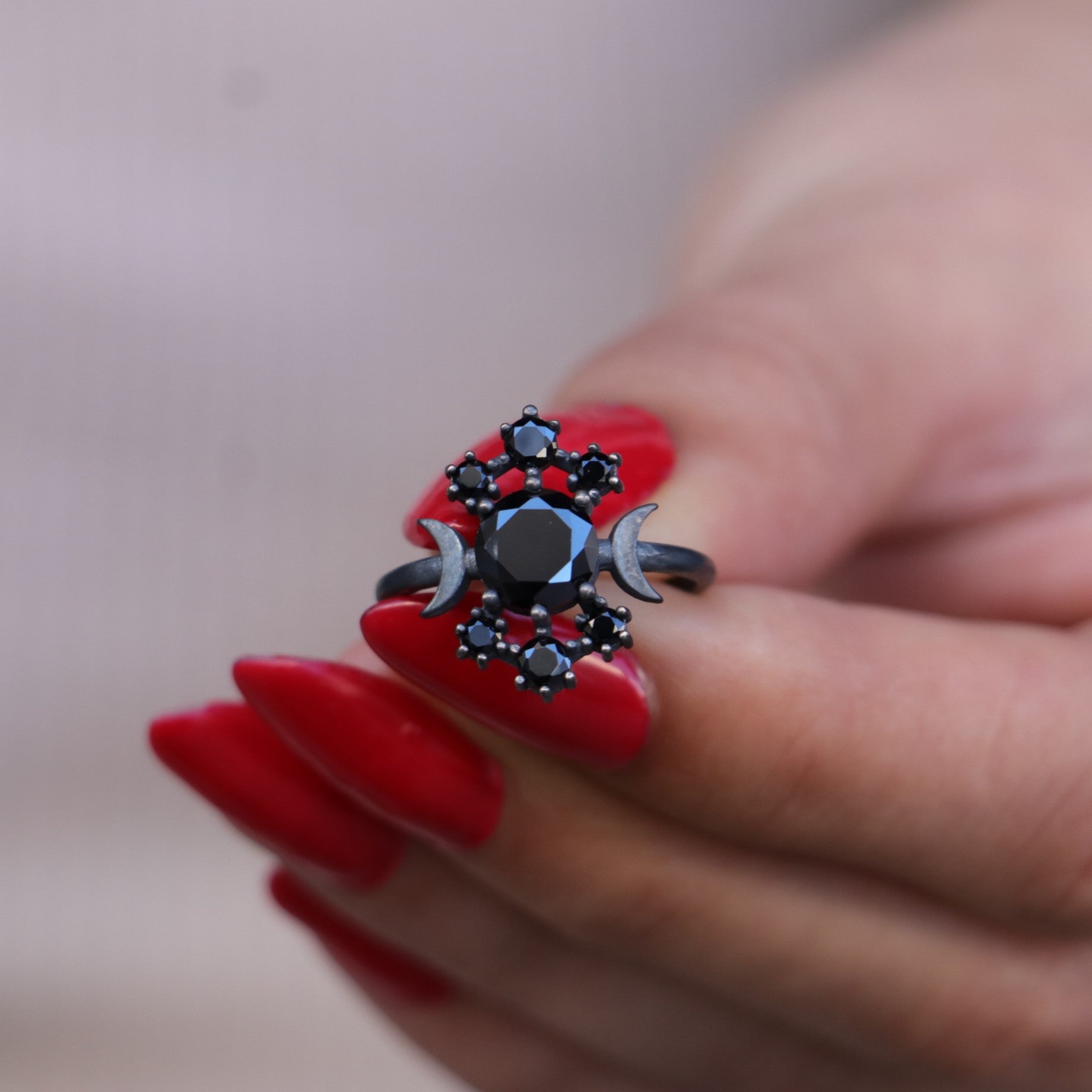 Moon Goddess Onyx Oxidized 925 Silver Ring