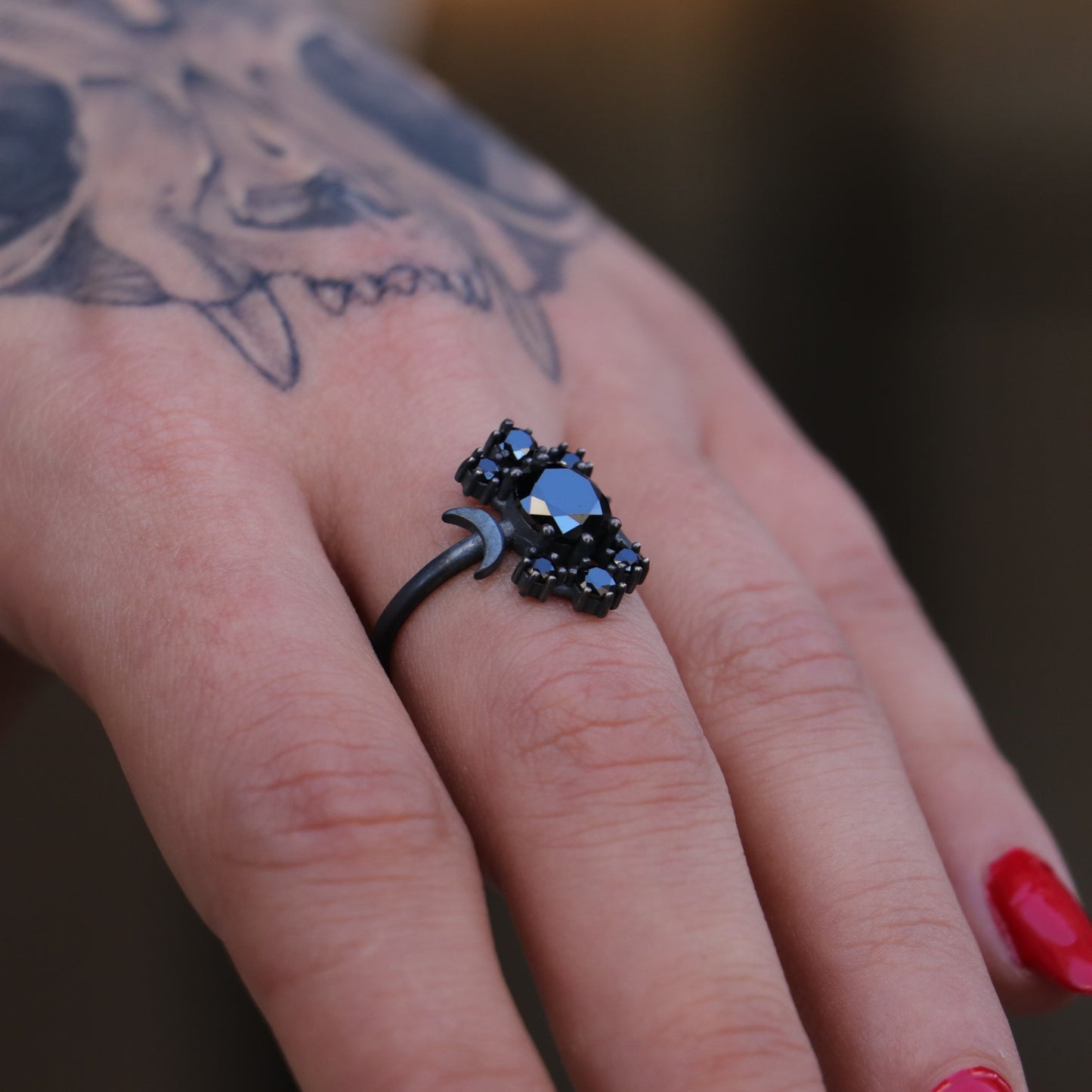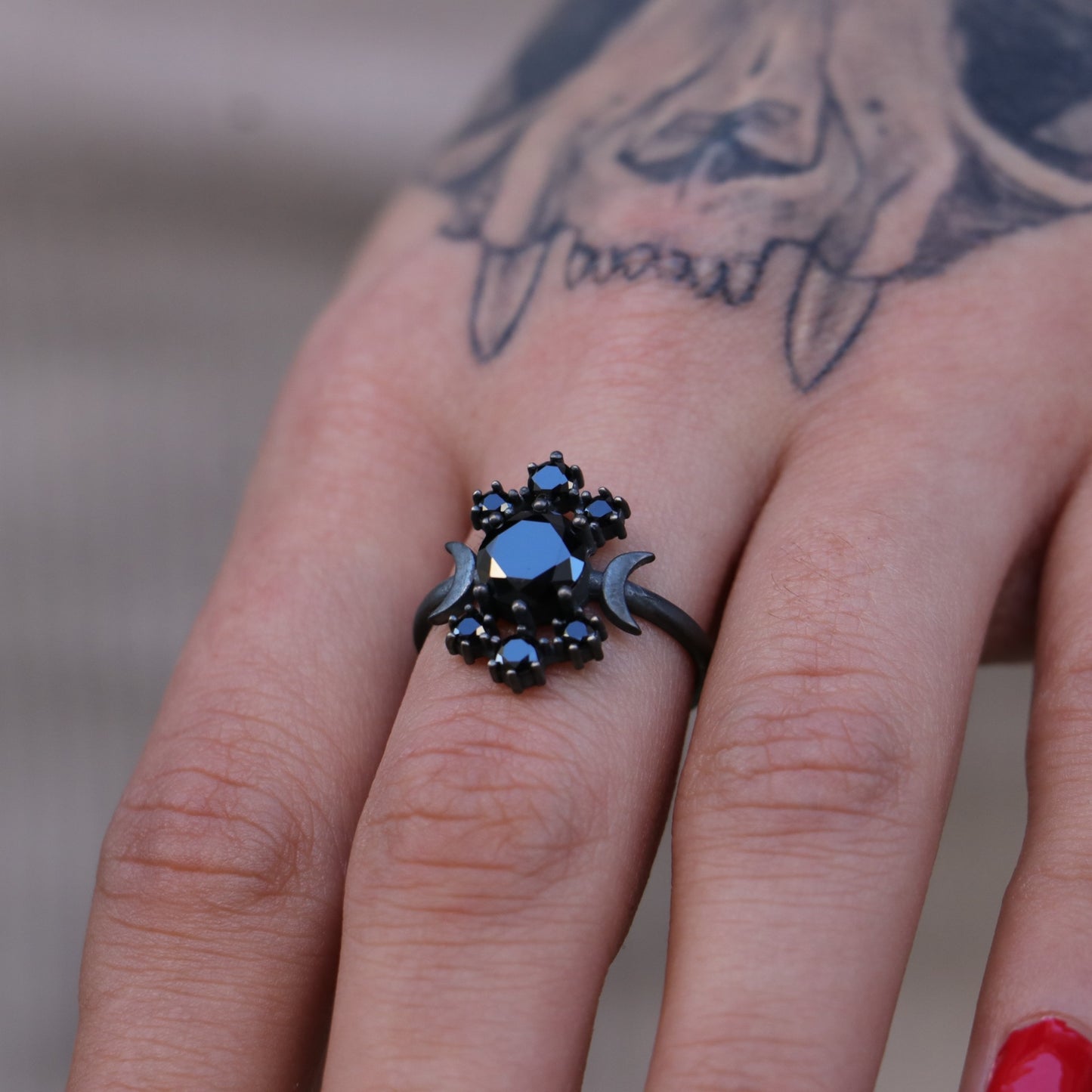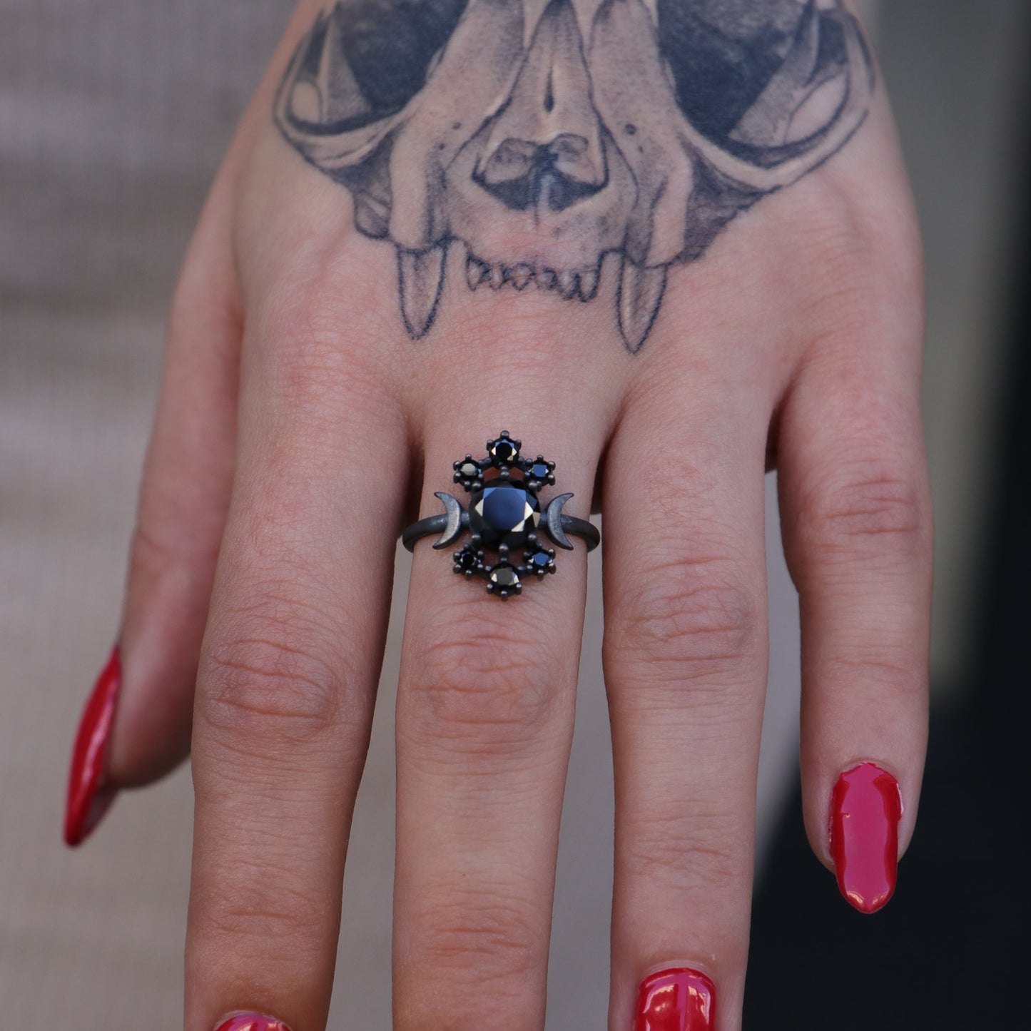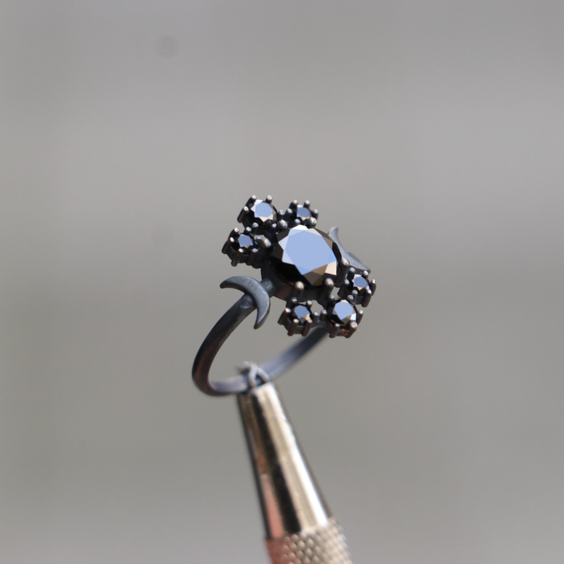 Moon Goddess Onyx Oxidized 925 Silver Ring
