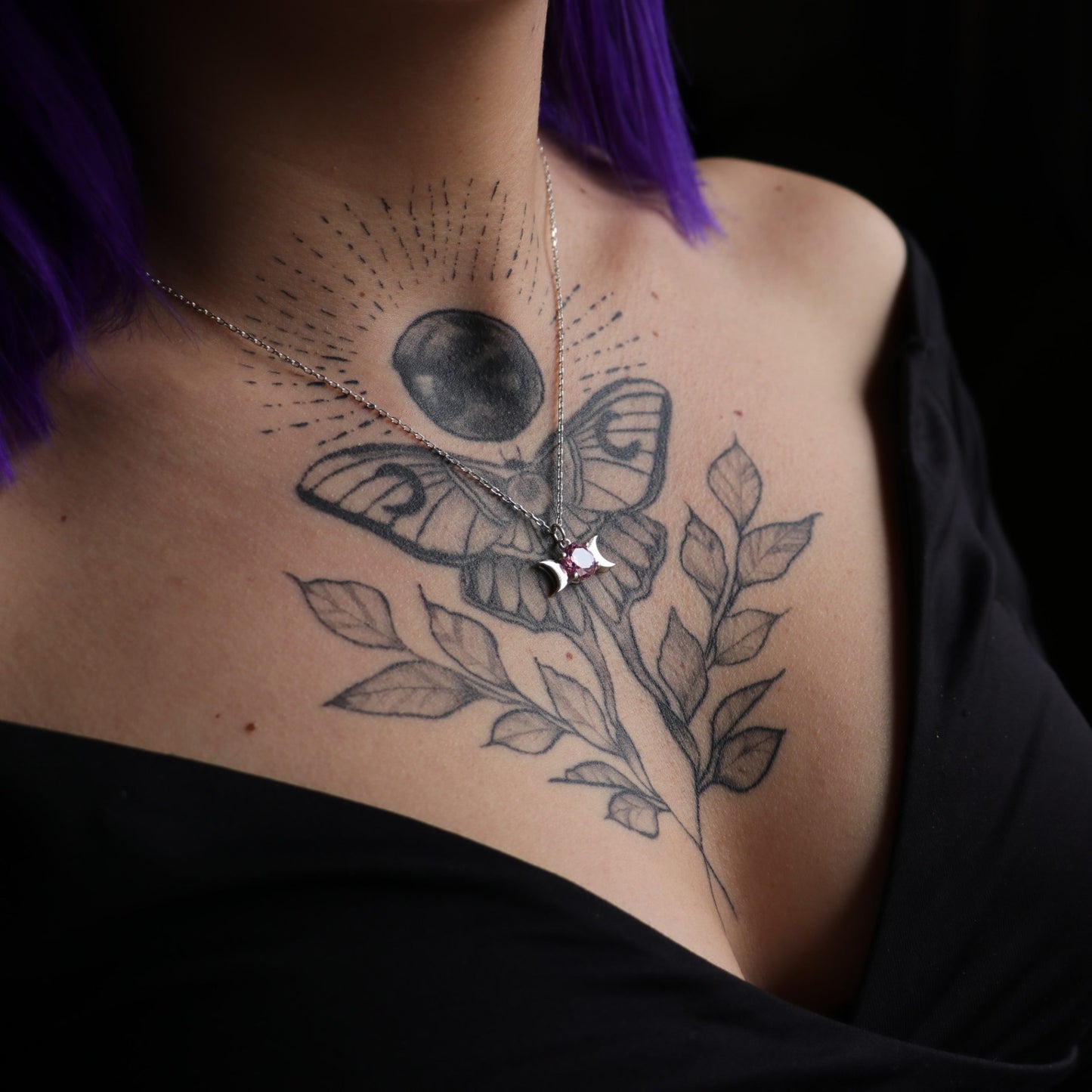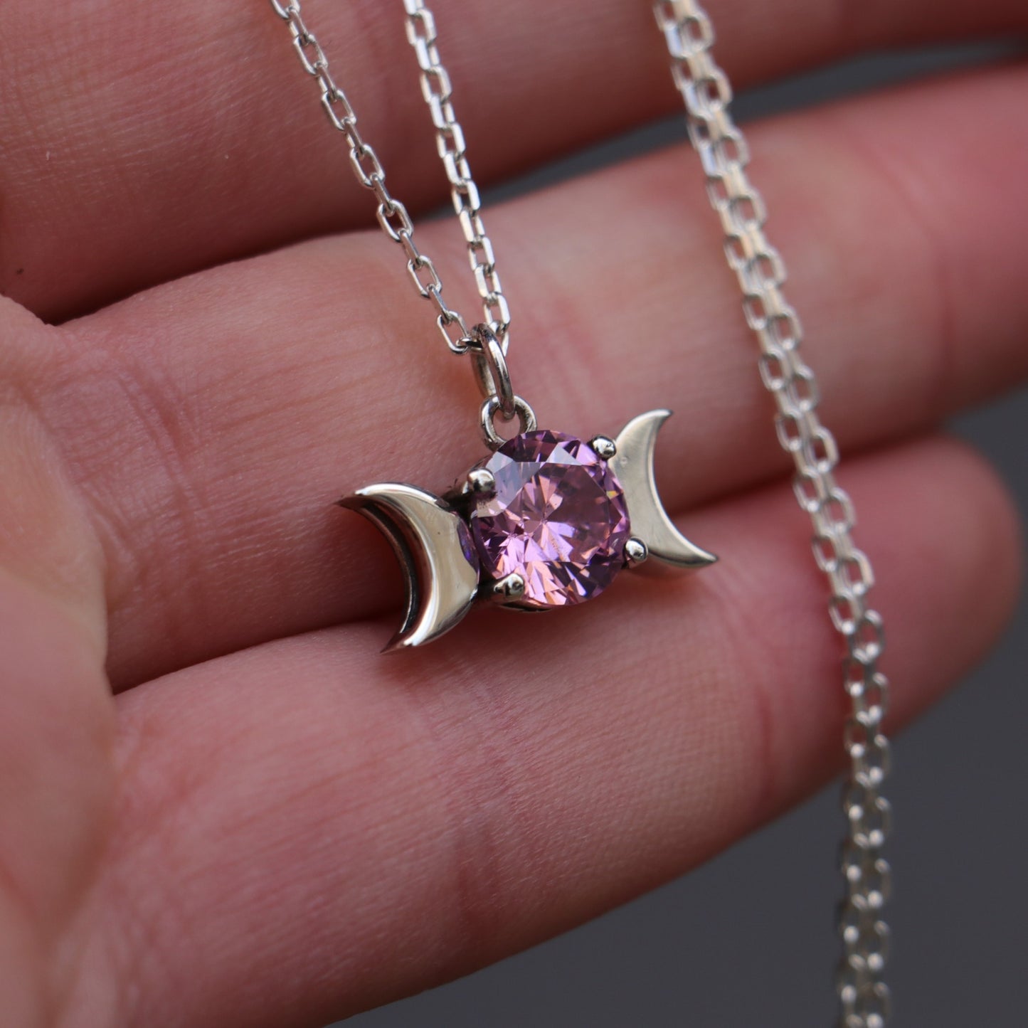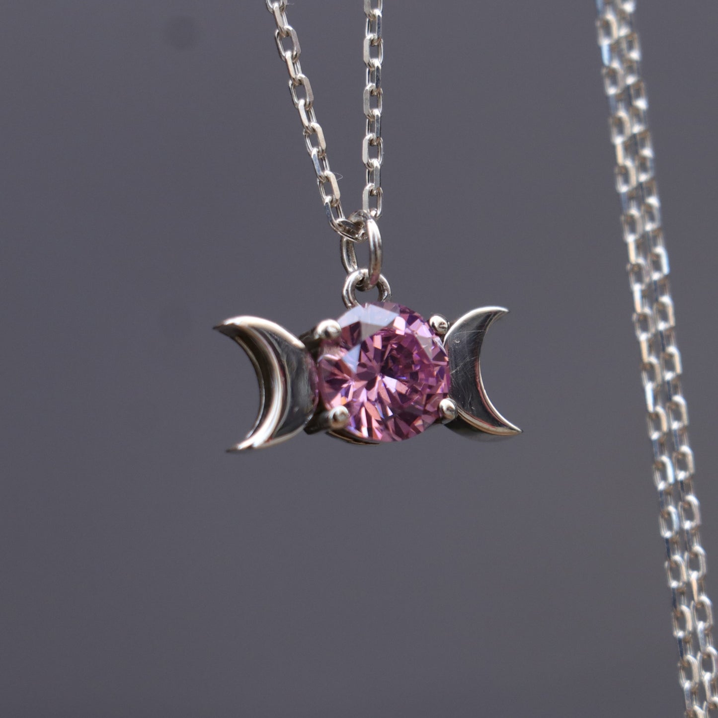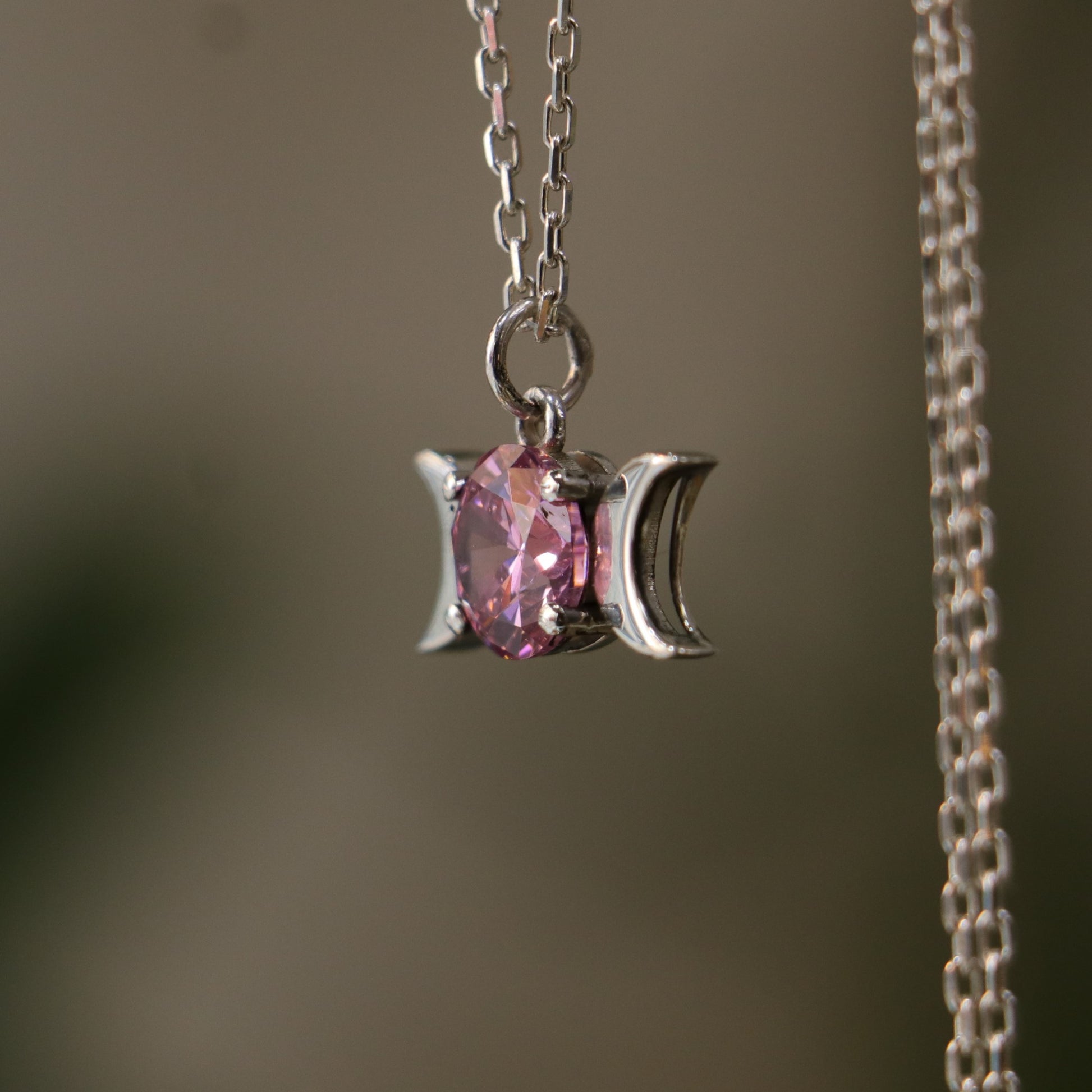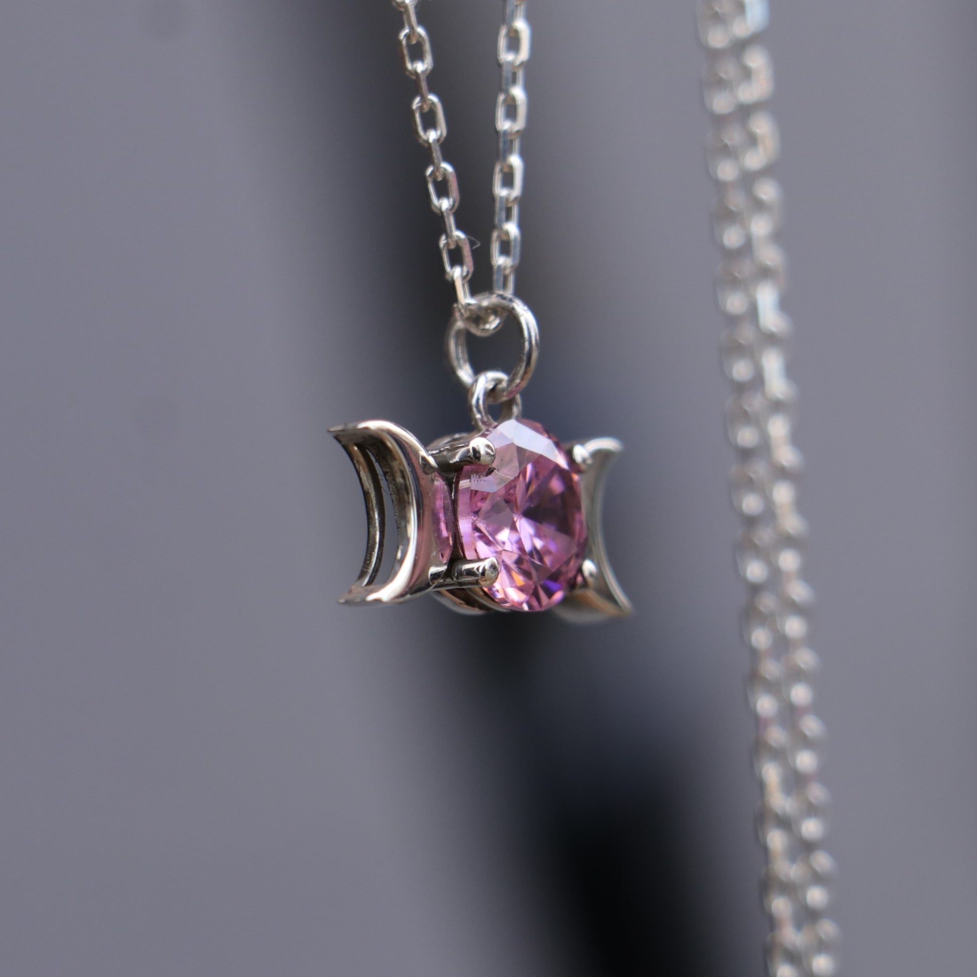 Moon Goddess Pink Quartz 925 Silver Necklace