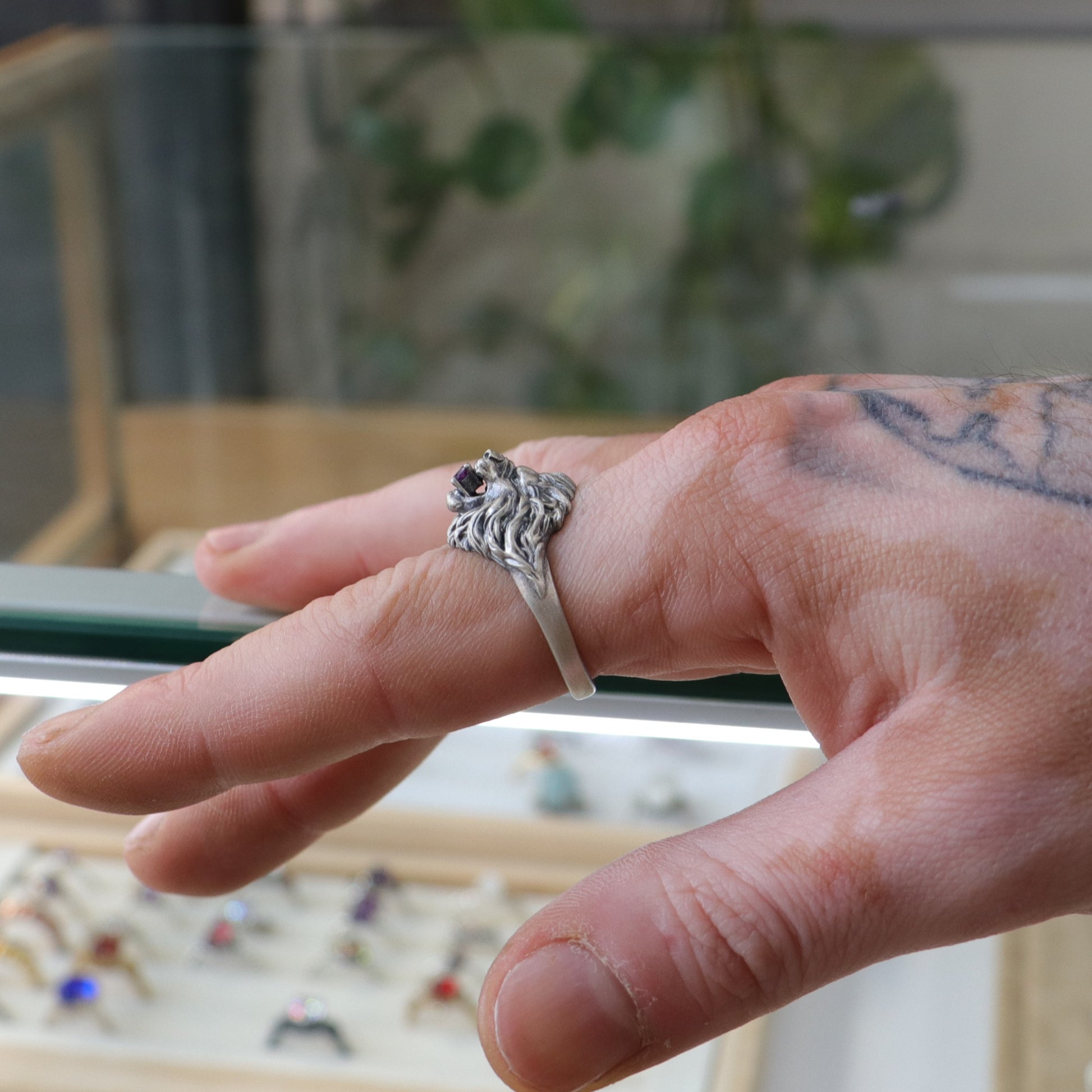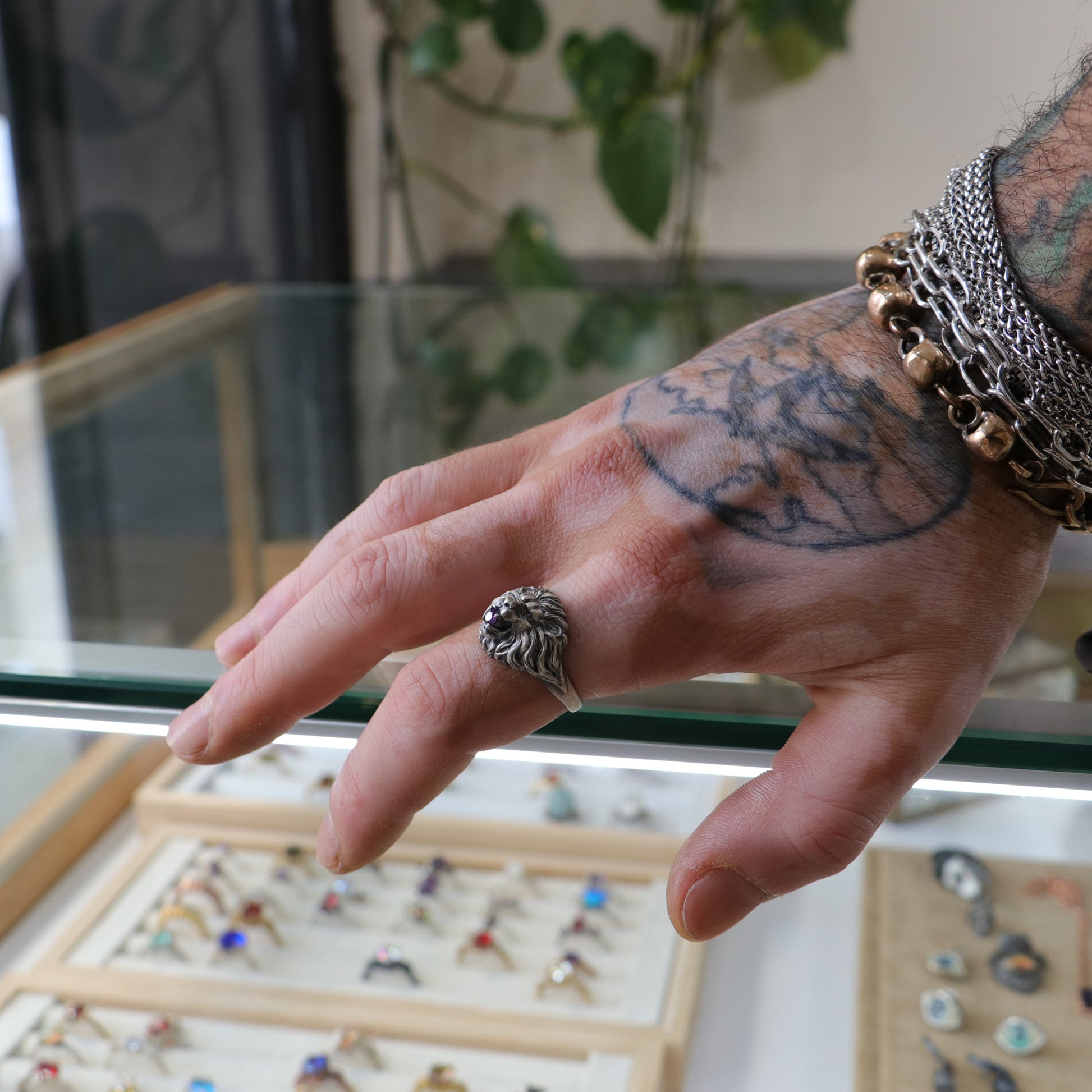In my designs, which are improvised with the emotions felt by the raw, natural stones I use, I combine the stones with the "nailing" technique, which is also an old-school craft, without using any chemical ingredients.