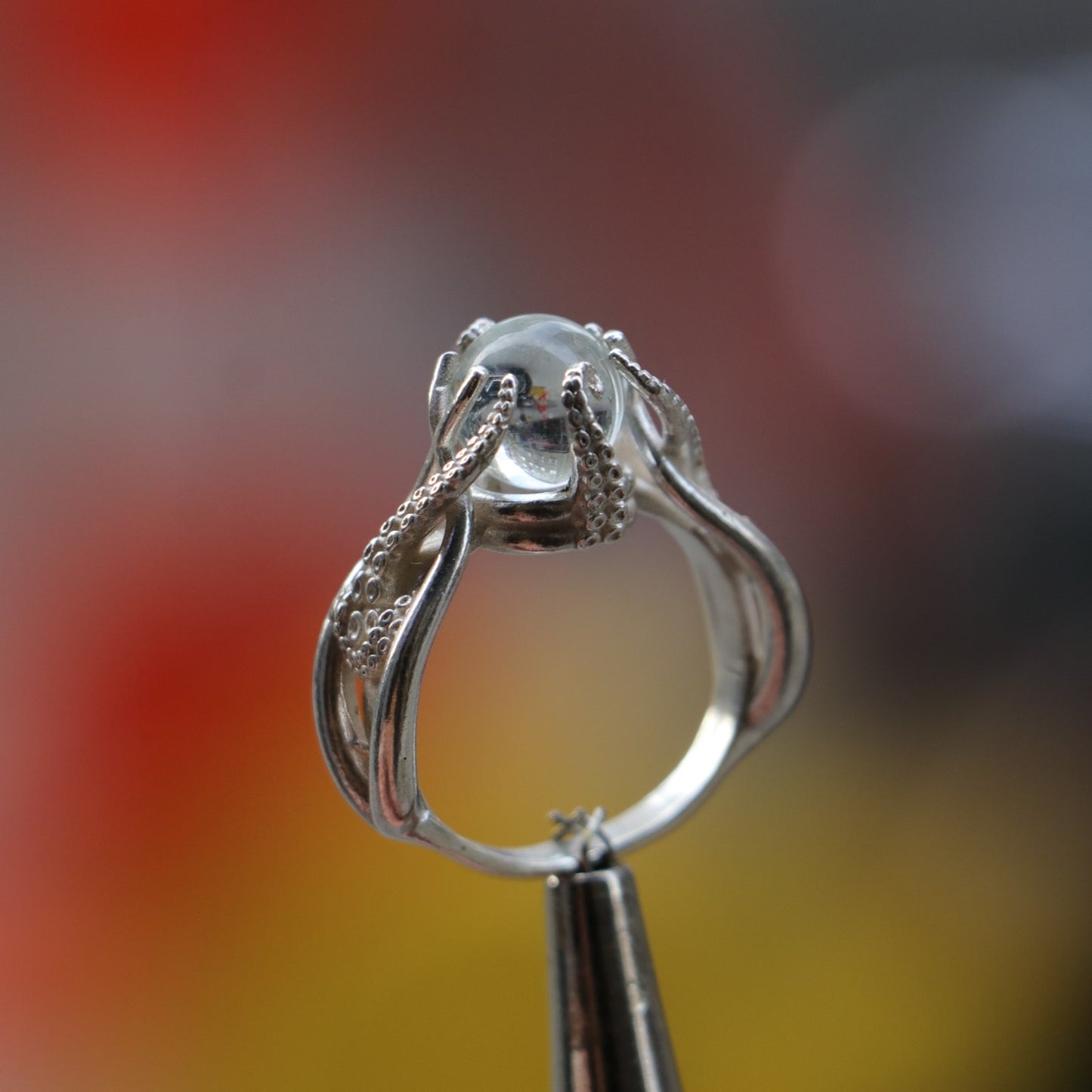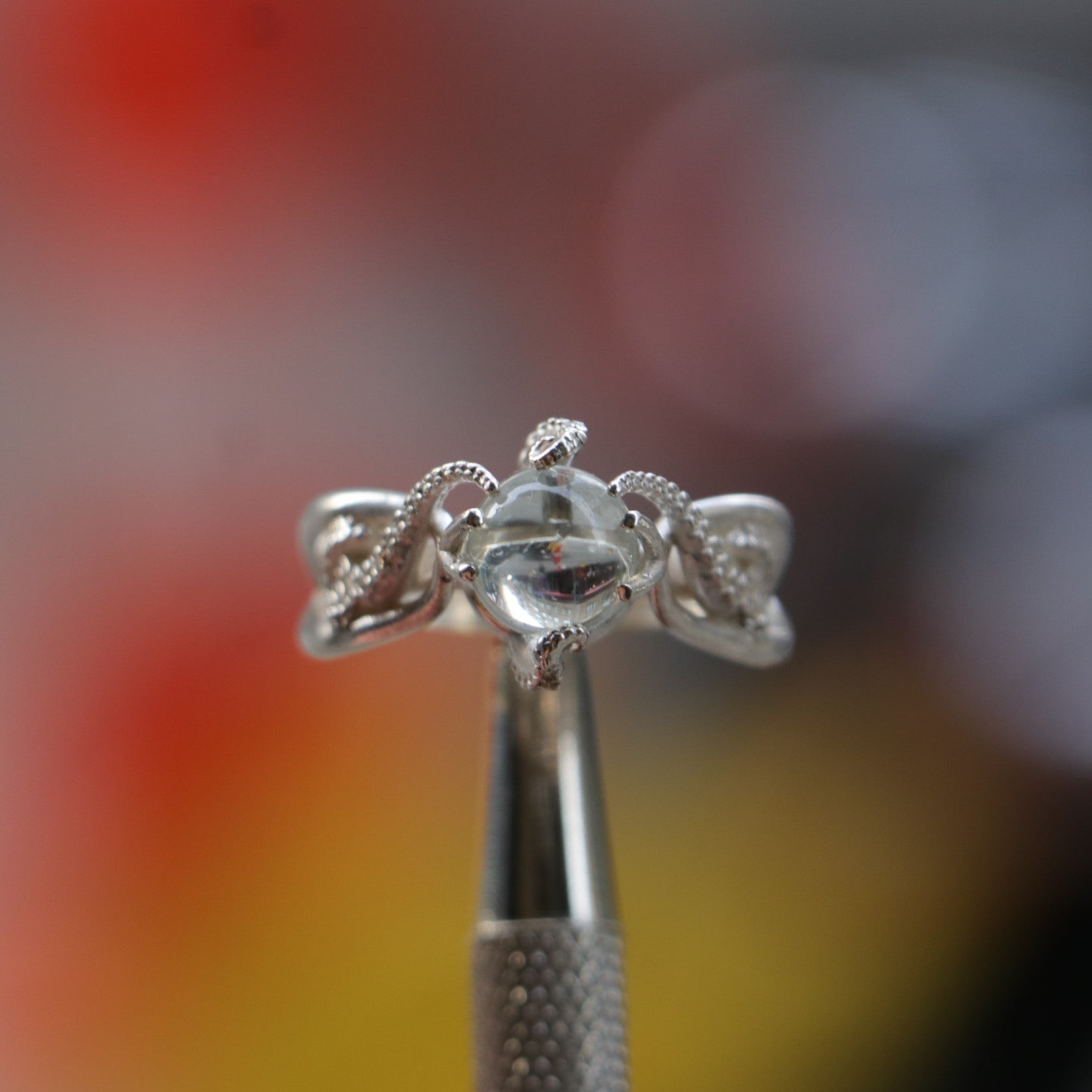 In my designs, which are improvised with the emotions felt by the raw, natural stones I use, I combine the stones with the "nailing" technique, which is also an old-school craft, without using any chemical ingredients.