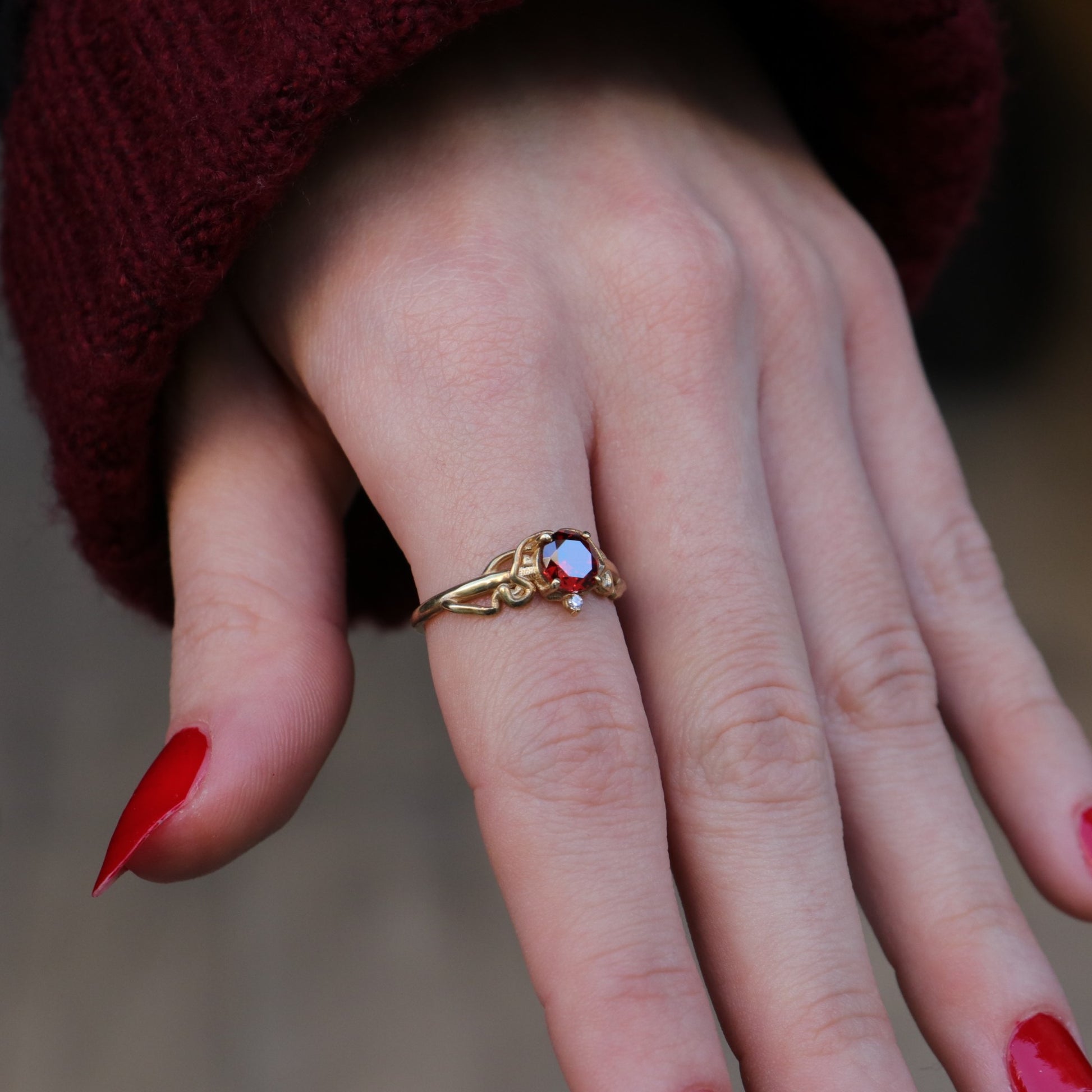 Branches Garnet and Moissanite 925 Silver Gold Plated Ring