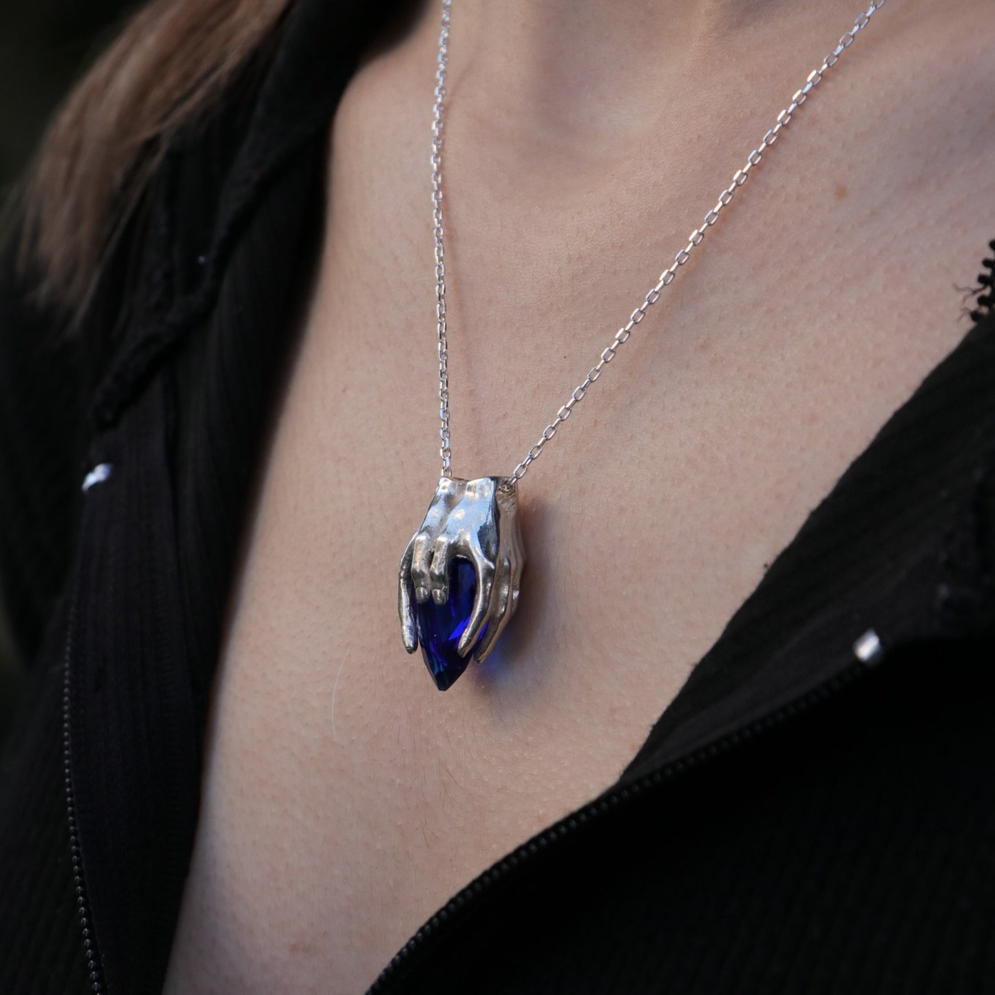 In my designs, which are improvised with the emotions felt by the raw, natural stones I use, I combine the stones with the "nailing" technique, which is also an old-school craft, without using any chemical ingredients.