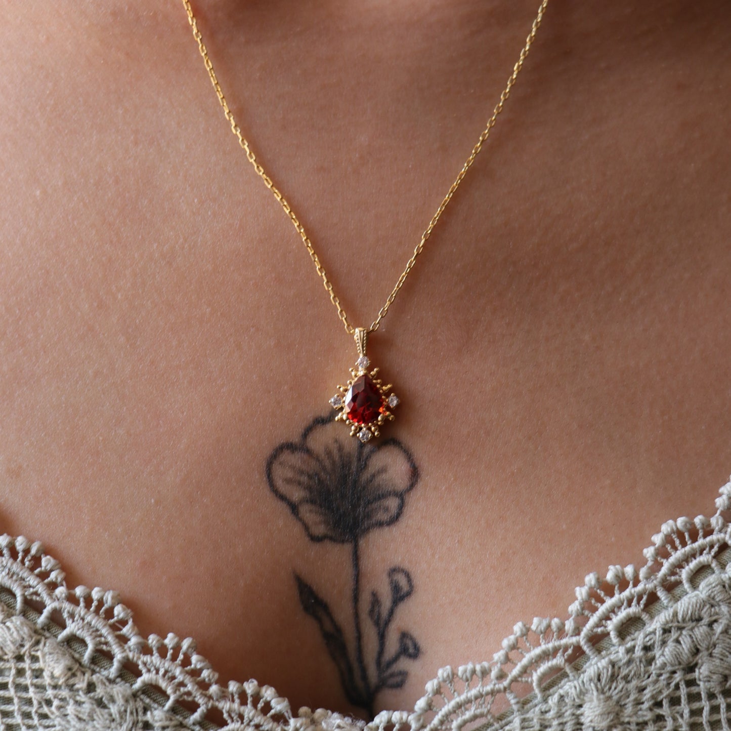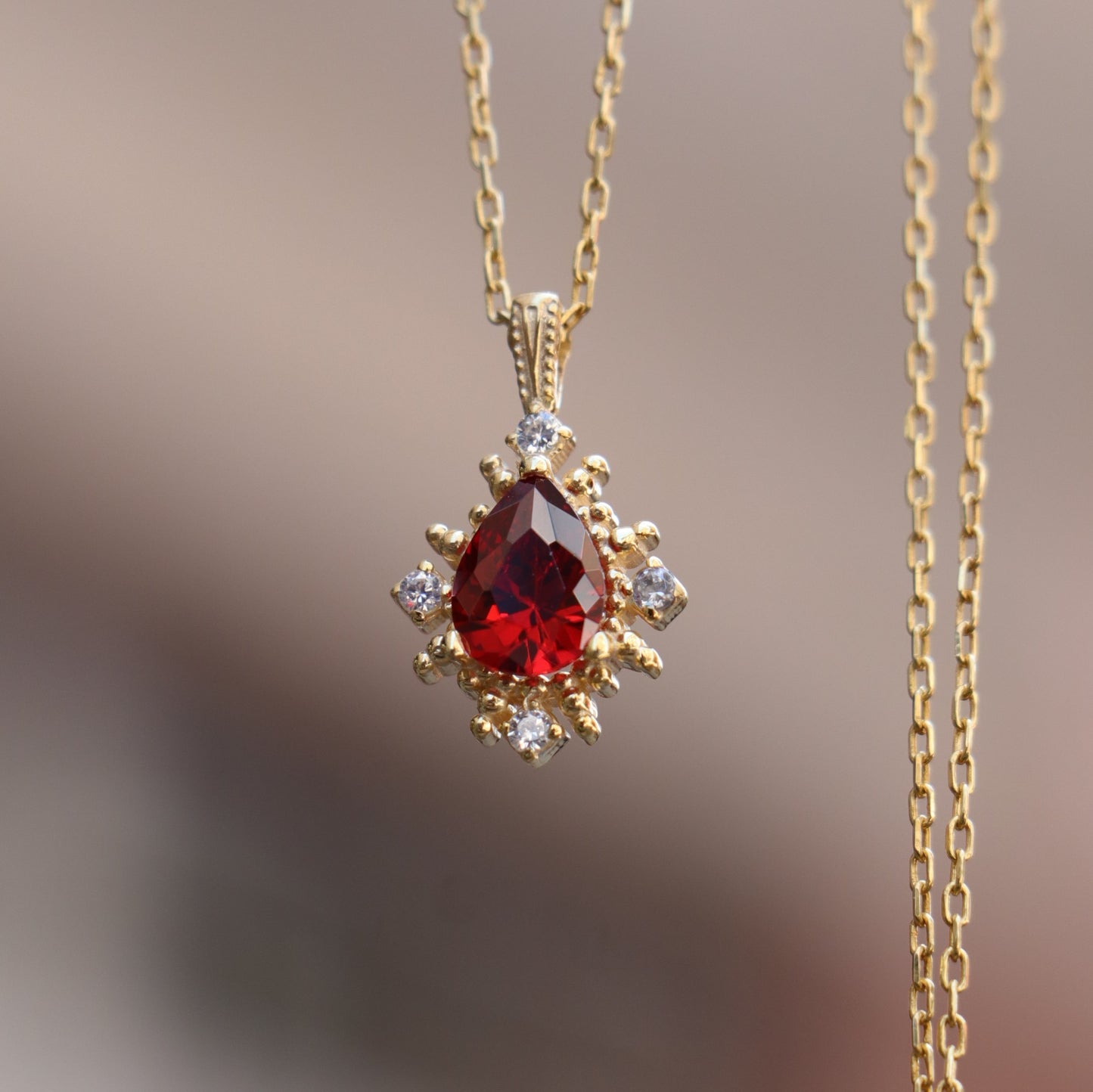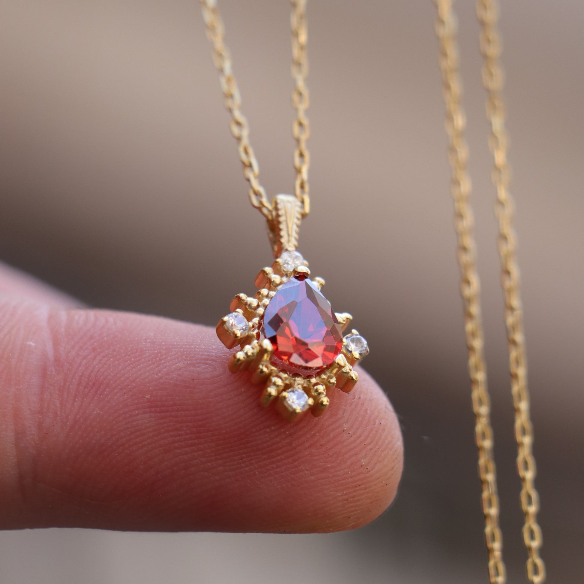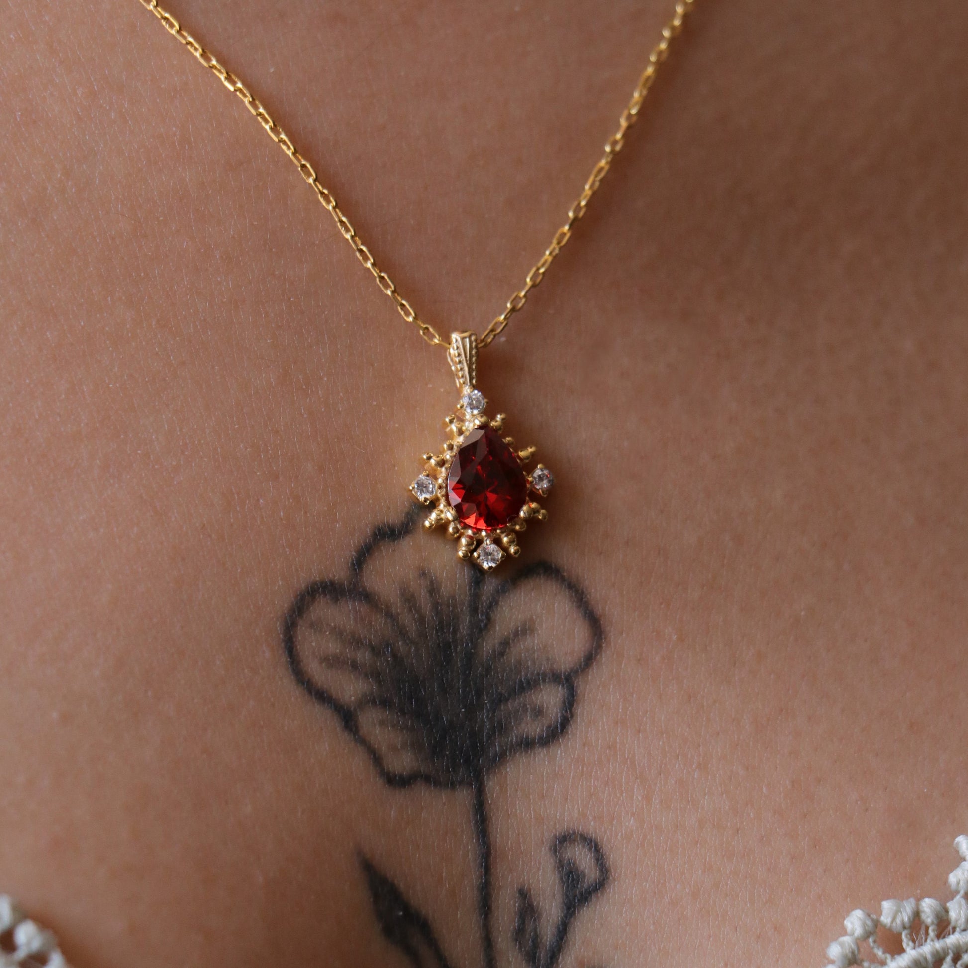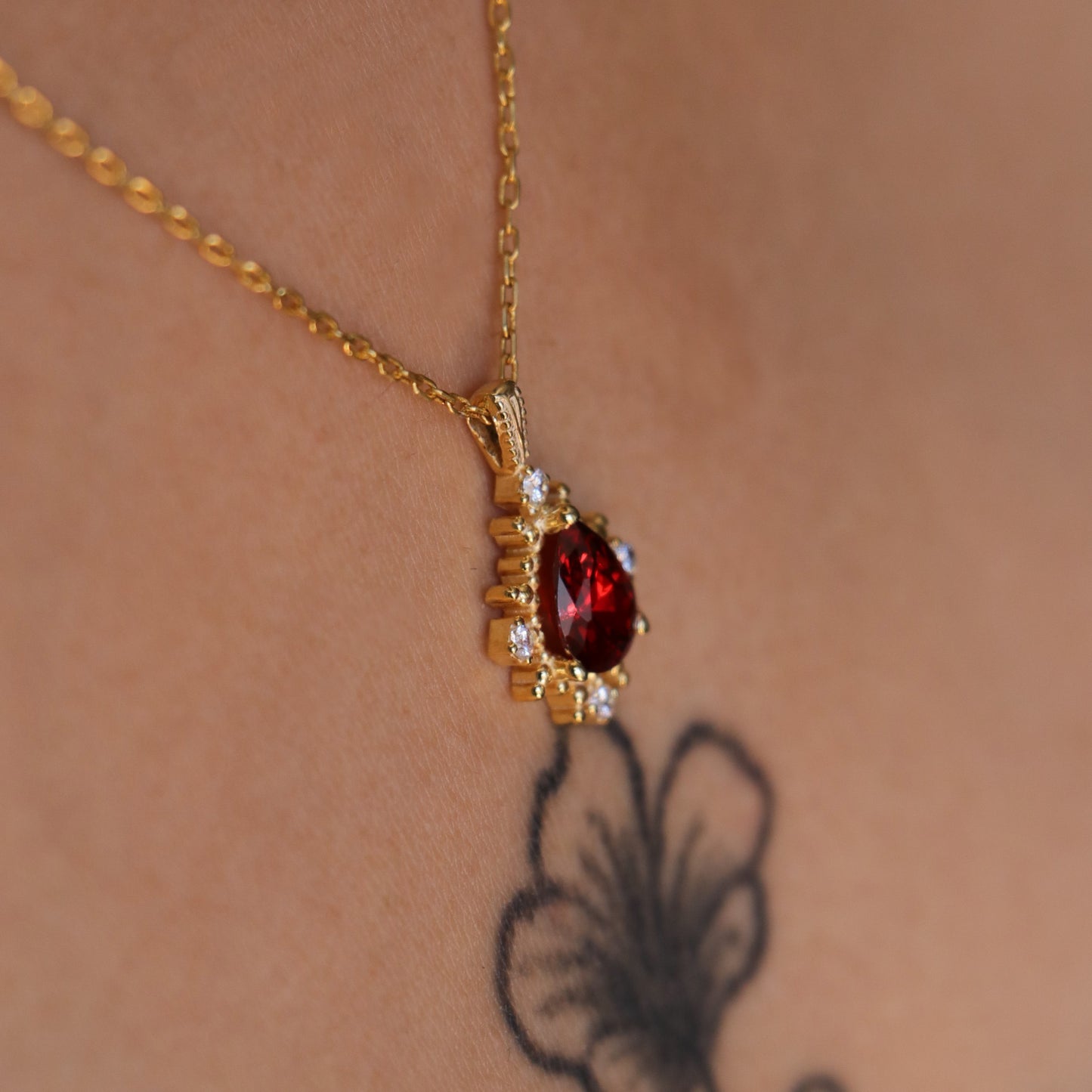 Drop Ruby and Moissanite 925 Silver Gold Plated Necklace