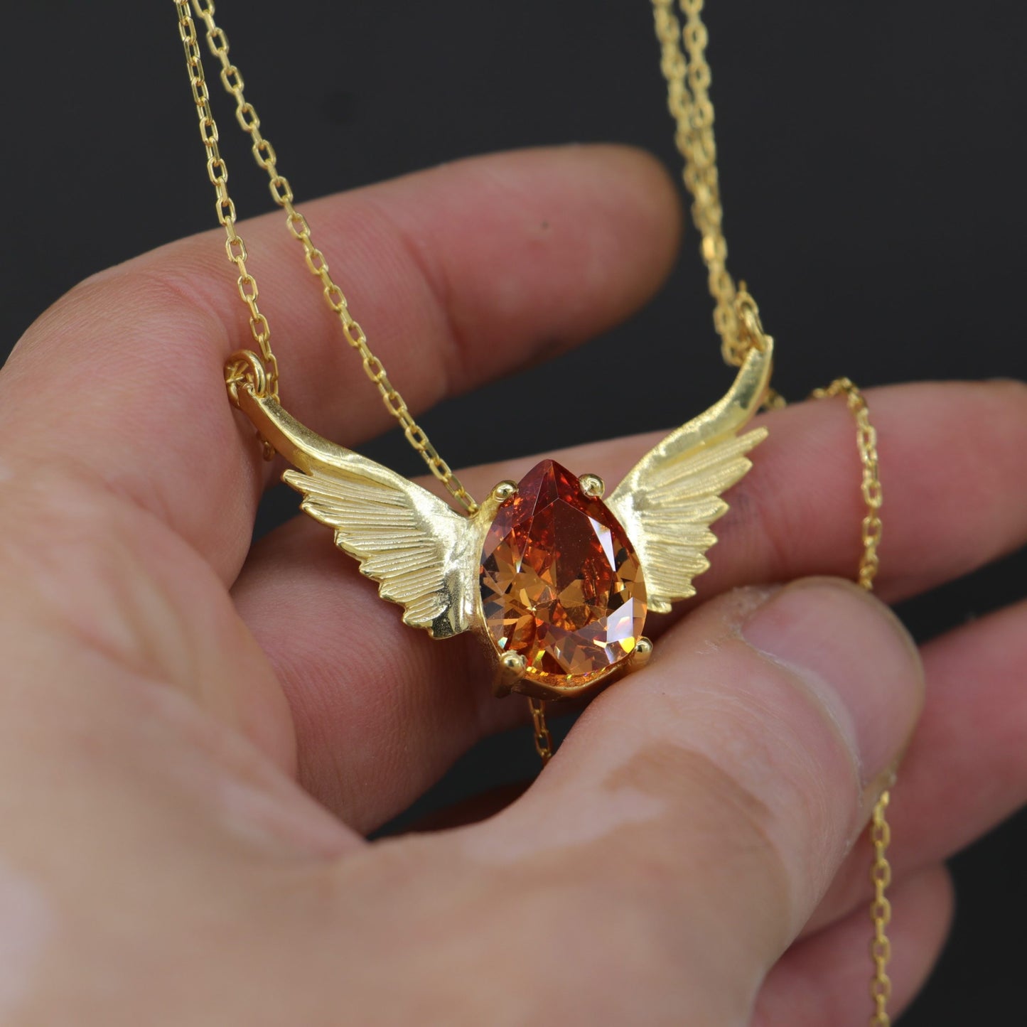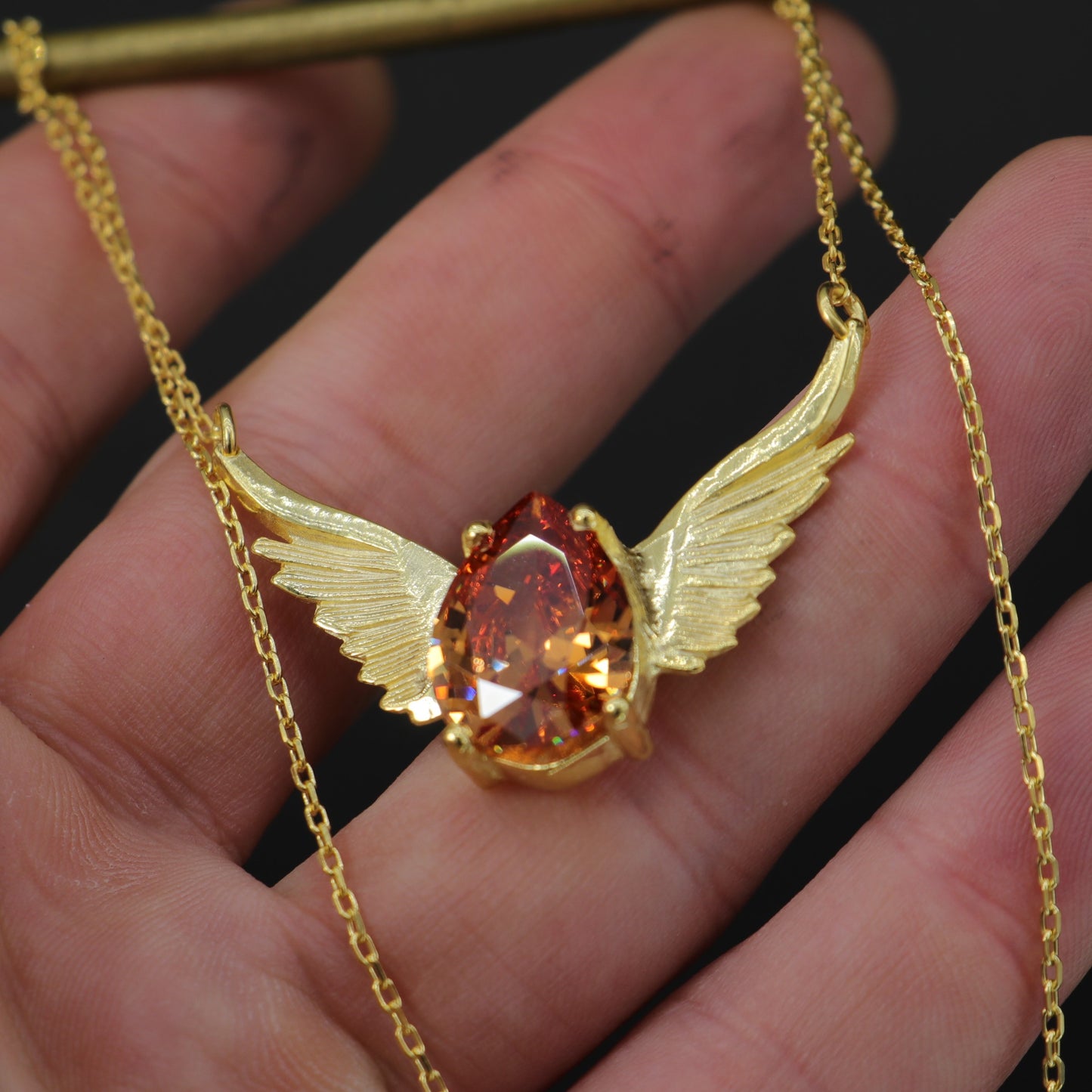 Drop Citrine Wing 925 Silver 18 Carat Gold Plated